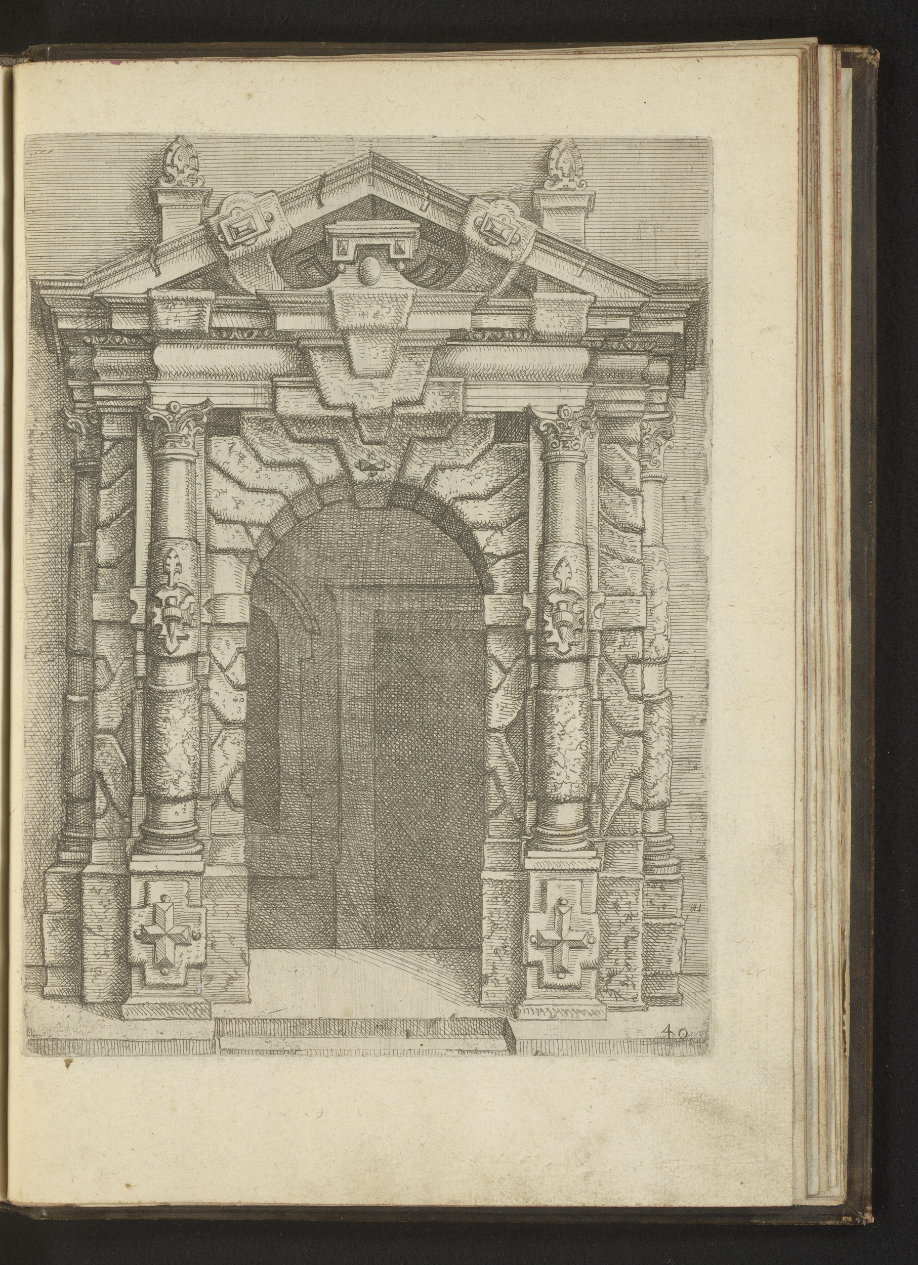 Portaal gedecoreerd met rustica, bekroningen en een ...