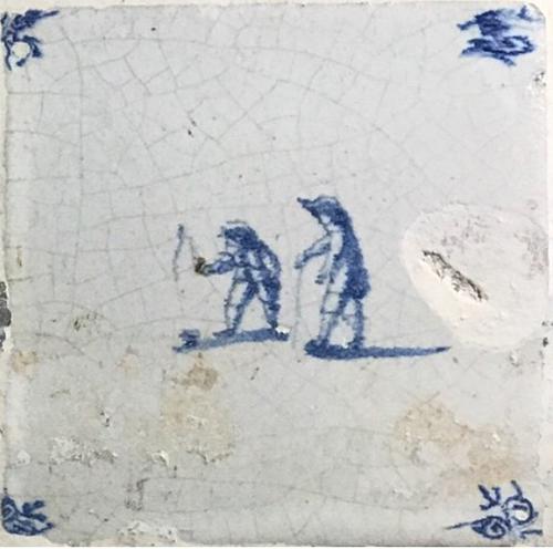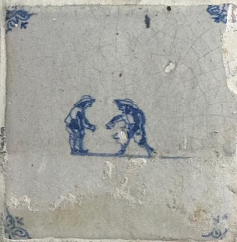 Tegel van aardewerk met tinglazuur voorstellende ? -...
