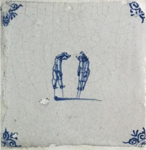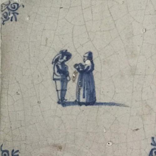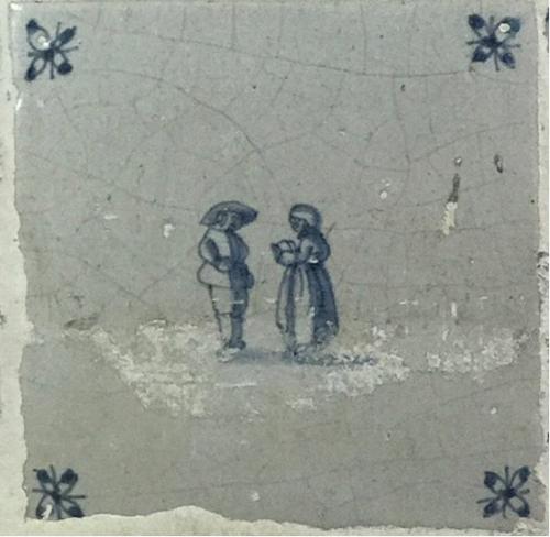 Tegel van aardewerk met tinglazuur voorstellende ste...
