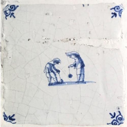Tegel van aardewerk met tinglazuur voorstellende zui...