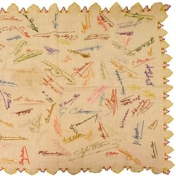 Tafellaken met geborduurde handtekeningen