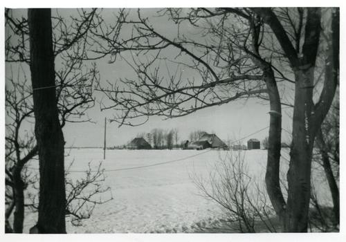 Foto in zwart-wit van de boerderij van Osinga te Men...