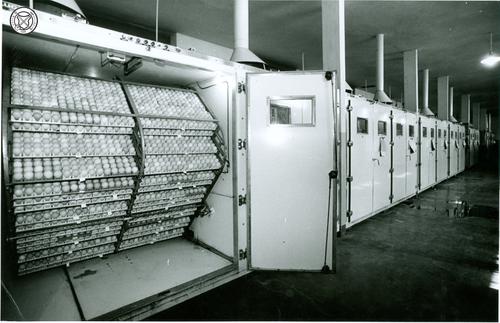 Interieur van een broedmachine met eieren