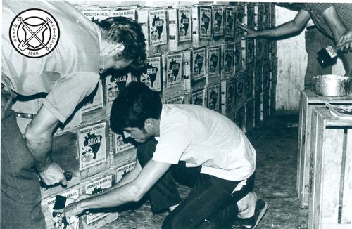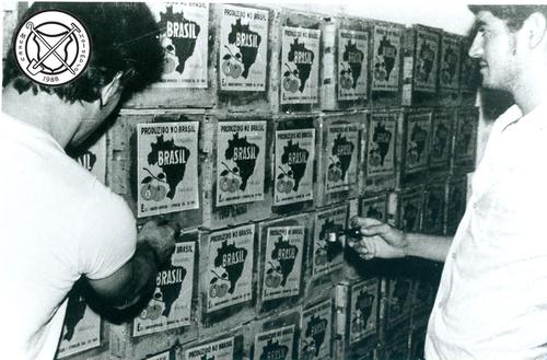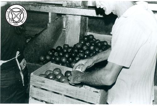 Etiketten plakken op sinaasappelkisten