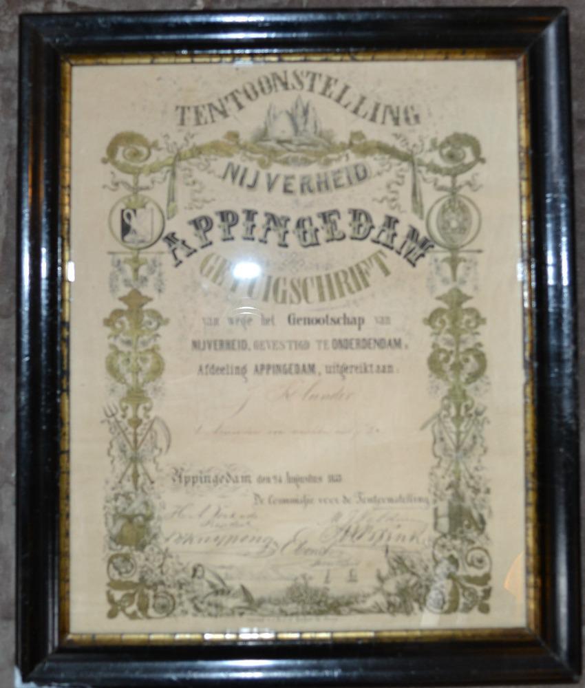 Getuigschrift Tentoonstelling Nijverheid Appingedam