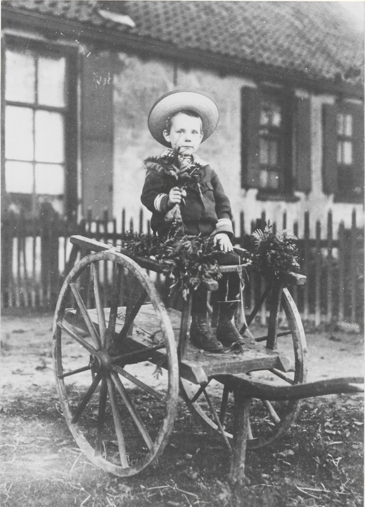Dhr. J. van Ojen op een melkkarretje, vermoedelijk t...