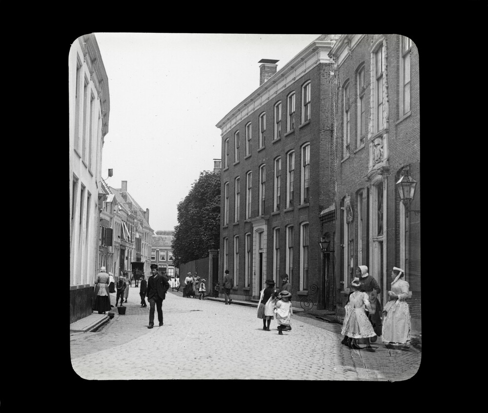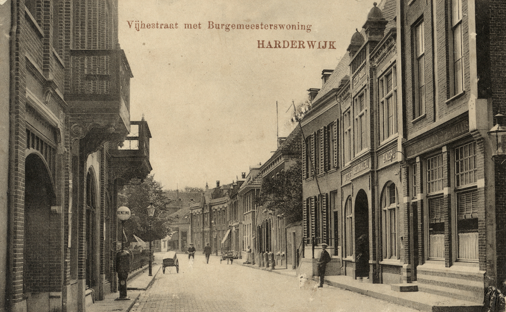 Prentbriefkaart, getiteld 'Vijhestraat met Burgemees...