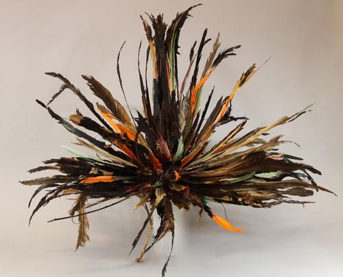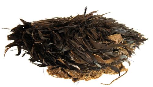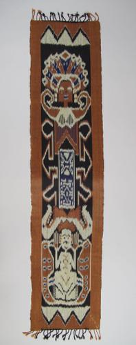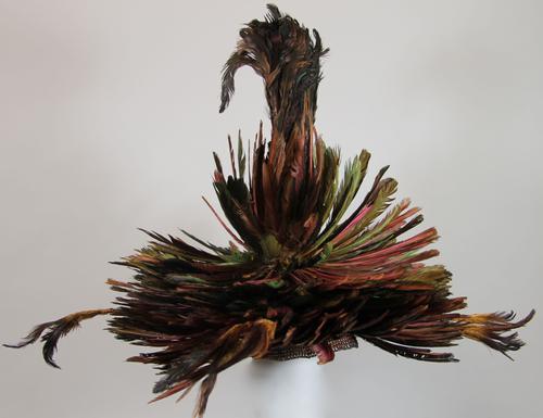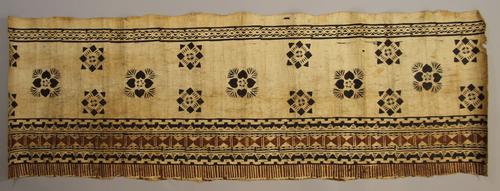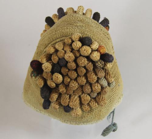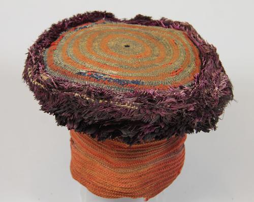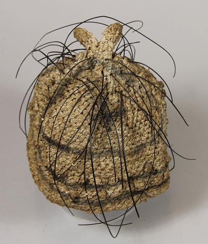 : Silk (ground and lining) with several types of metal thread; metal thread lace and plaited band and sequins; linen (interlining) (1)