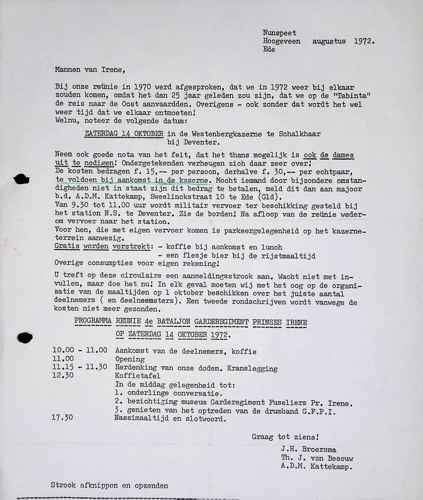 Uitnodiging bijeenkomst zaterdag 14 oktober 1972.