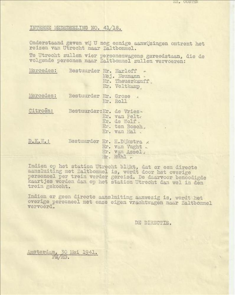 Interne mededeling van de N.V. Warmte aan dhr Oosten...