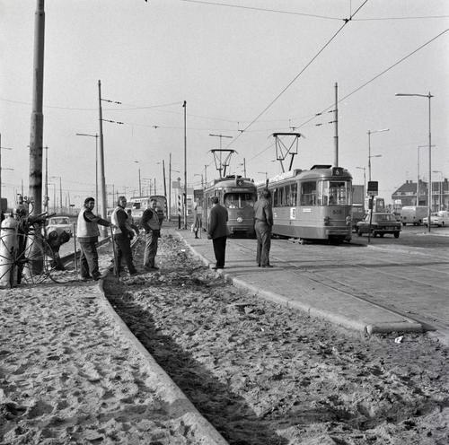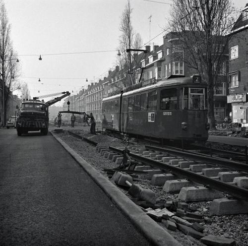 Rotterdam, Schiedamseweg, werkzaamheden aan het spoor