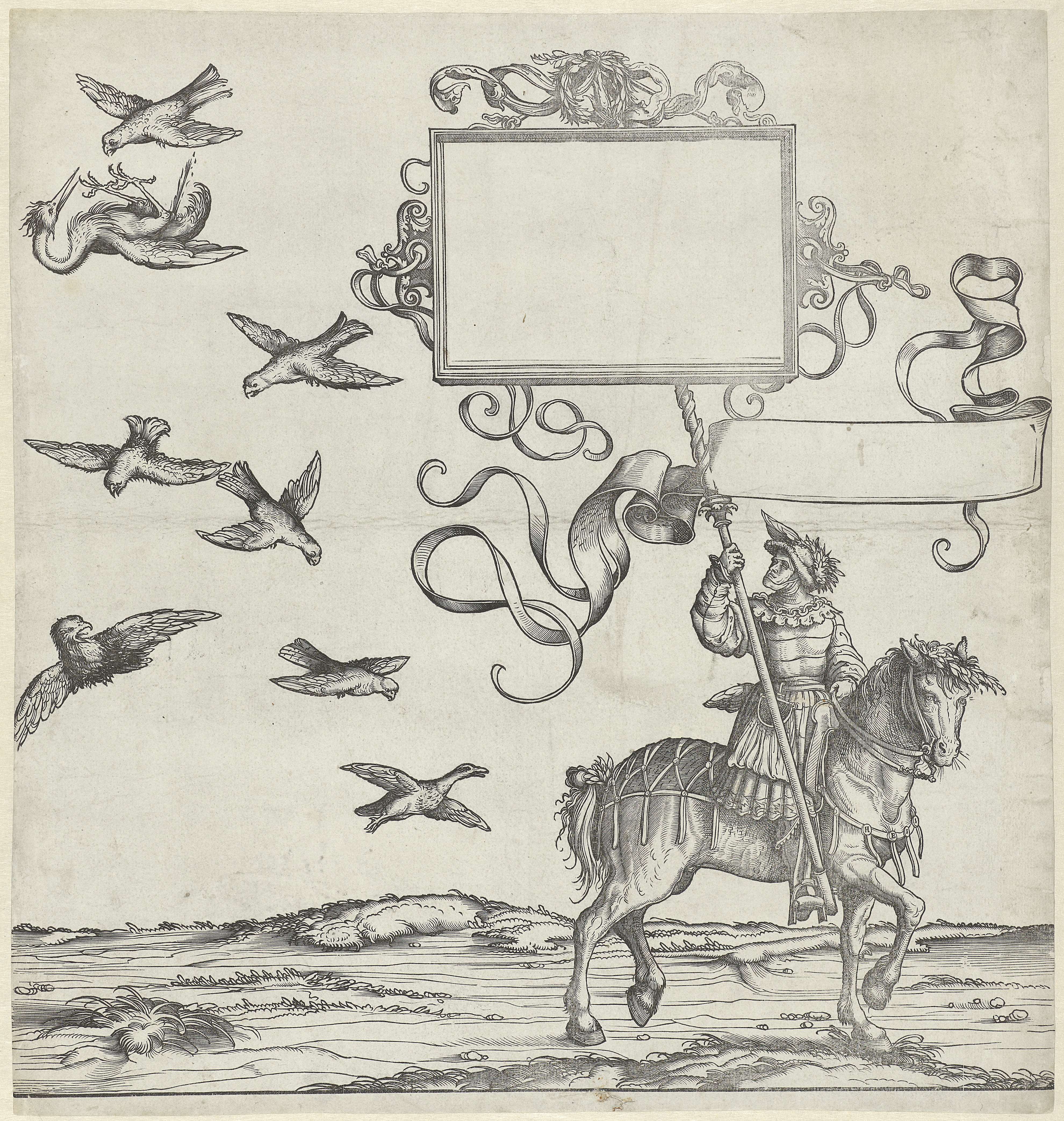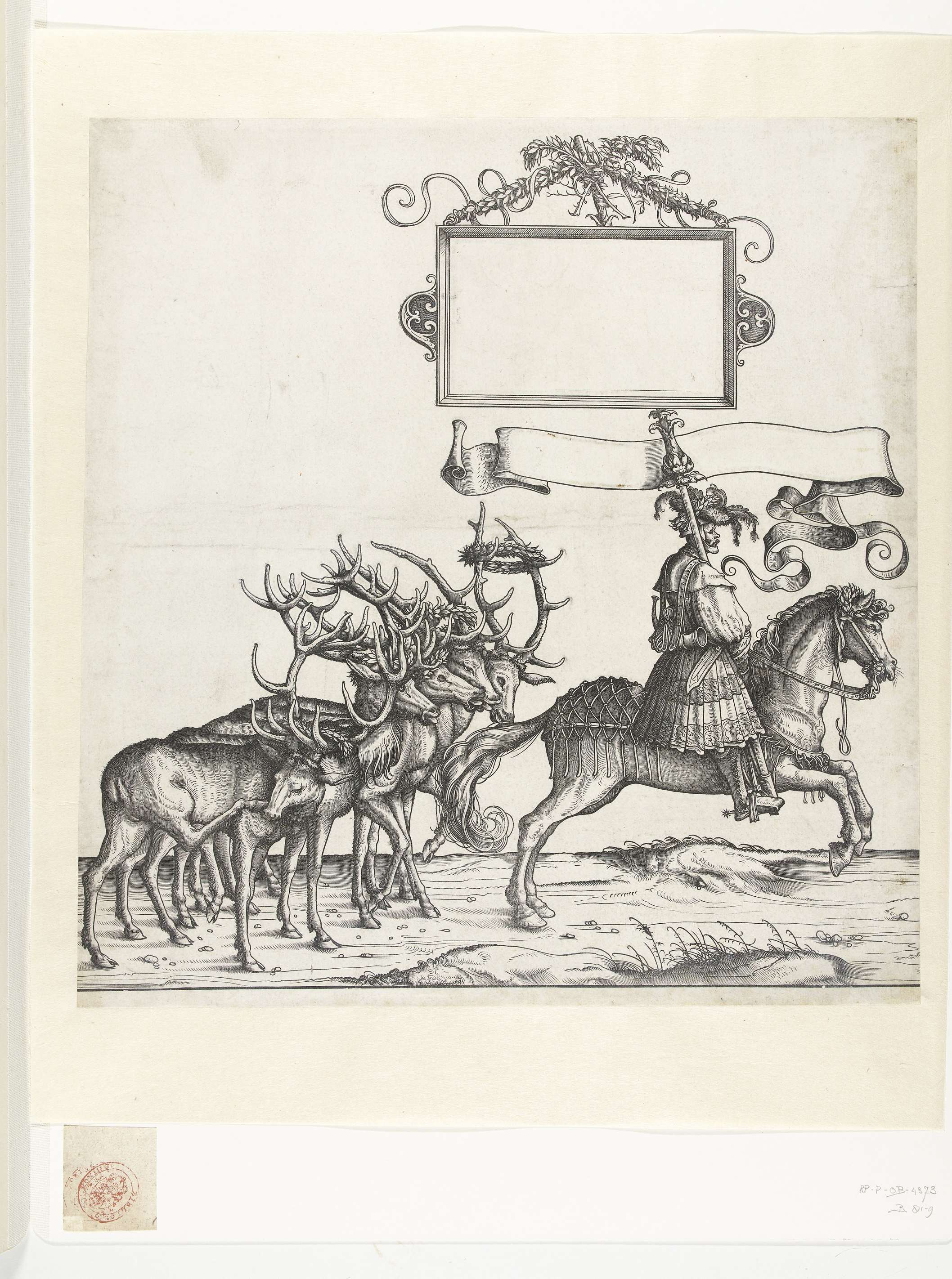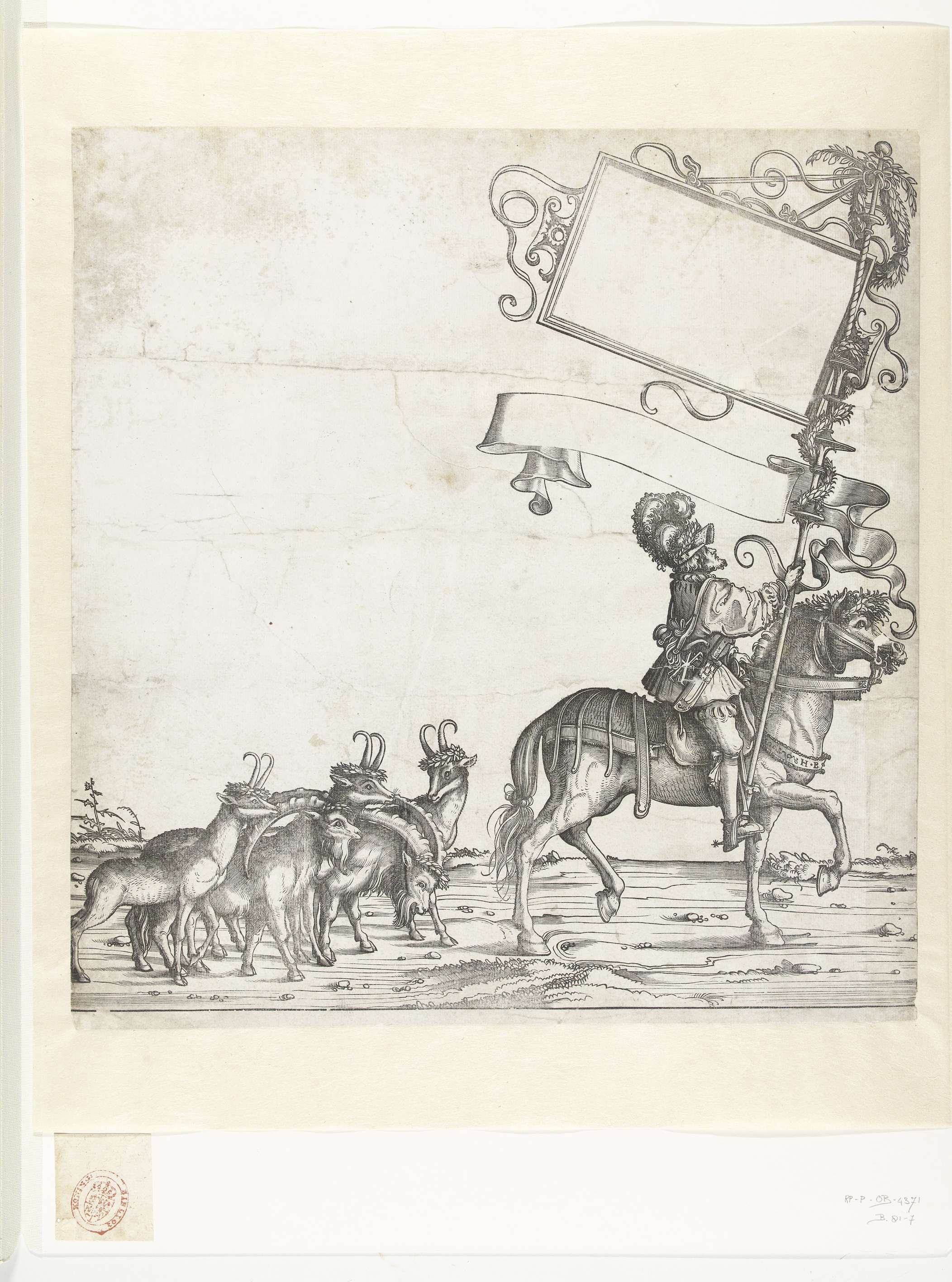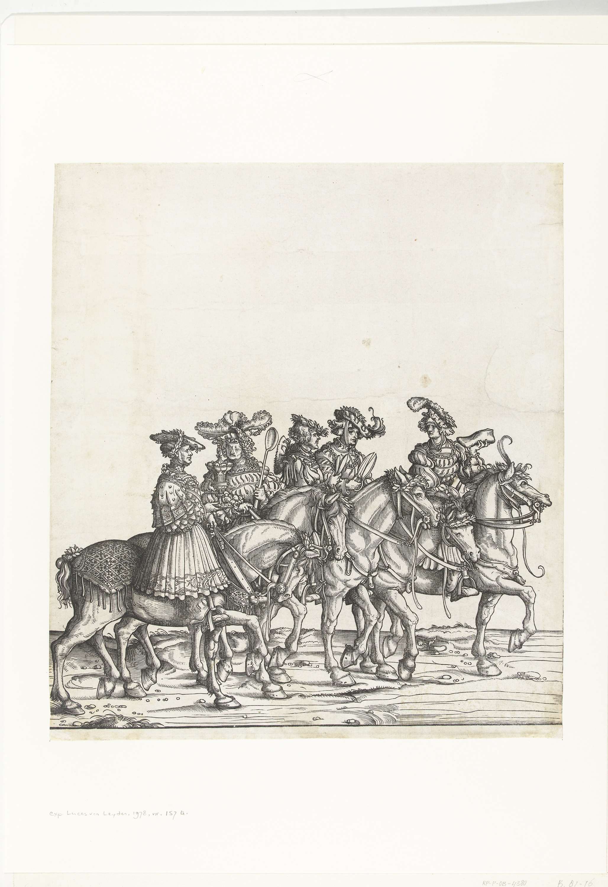 Triomfwagen met musici die spelen op blaasinstrumenten