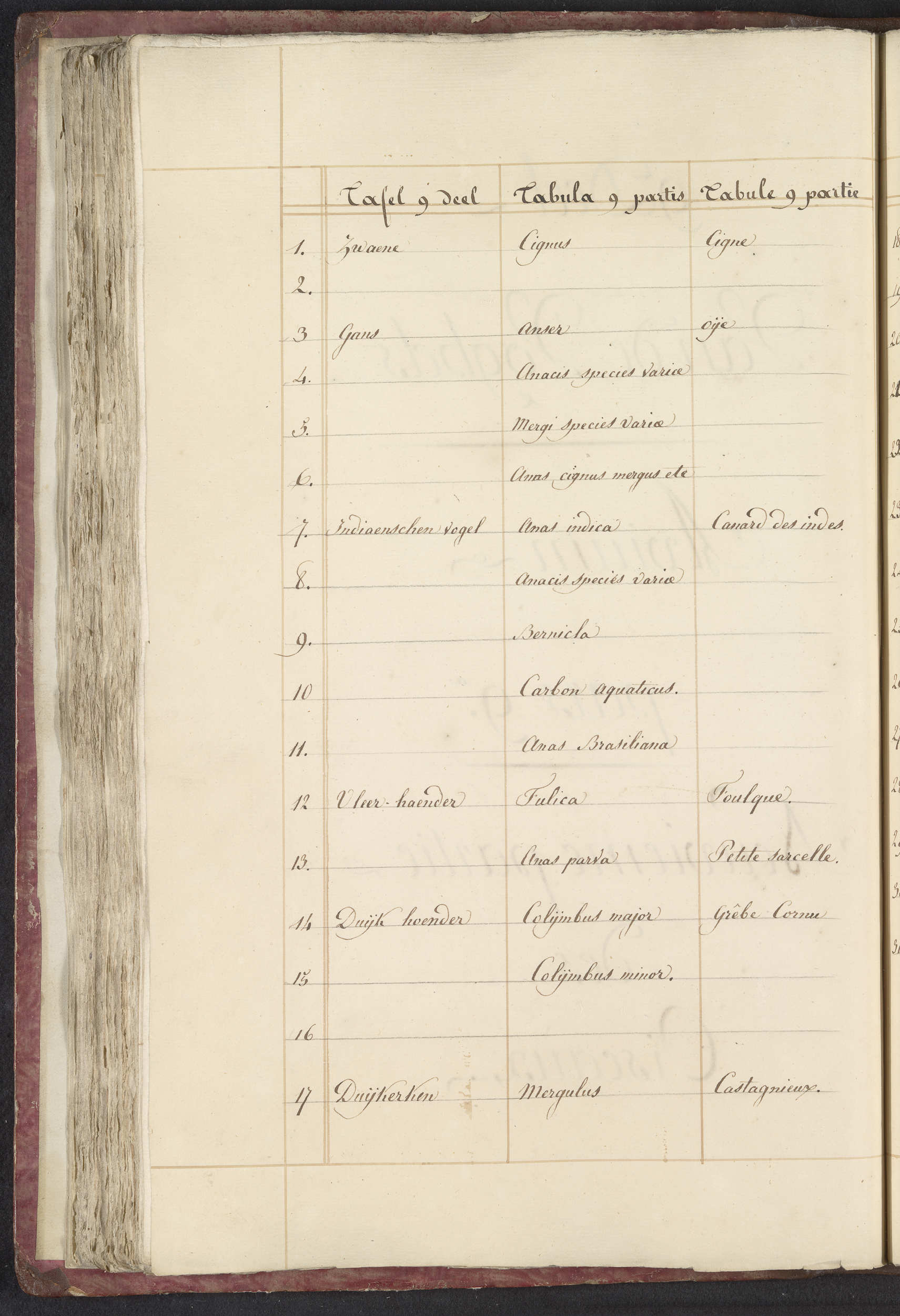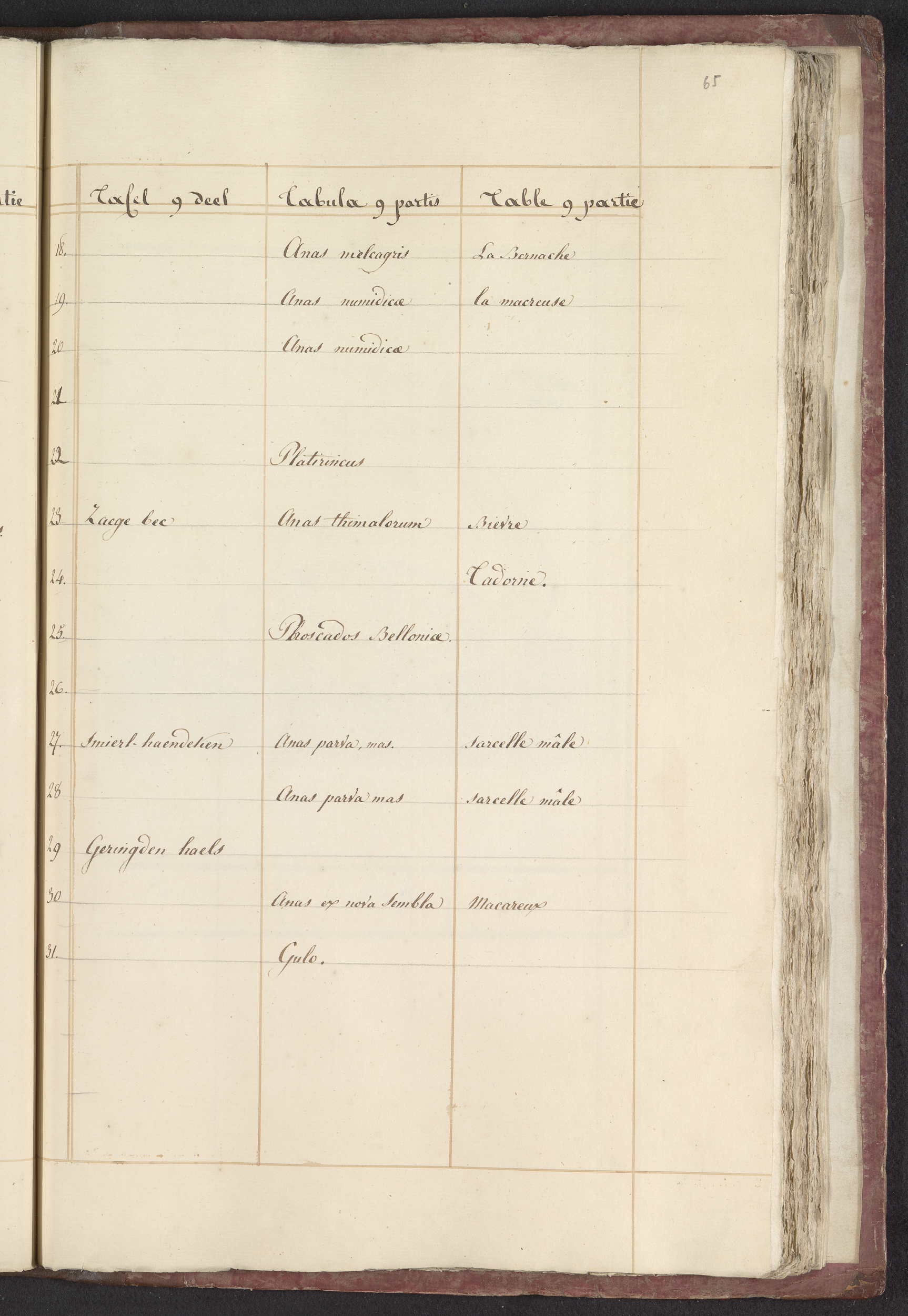 Blad met vier eenden (Anas) en een aalscholver (Phal...