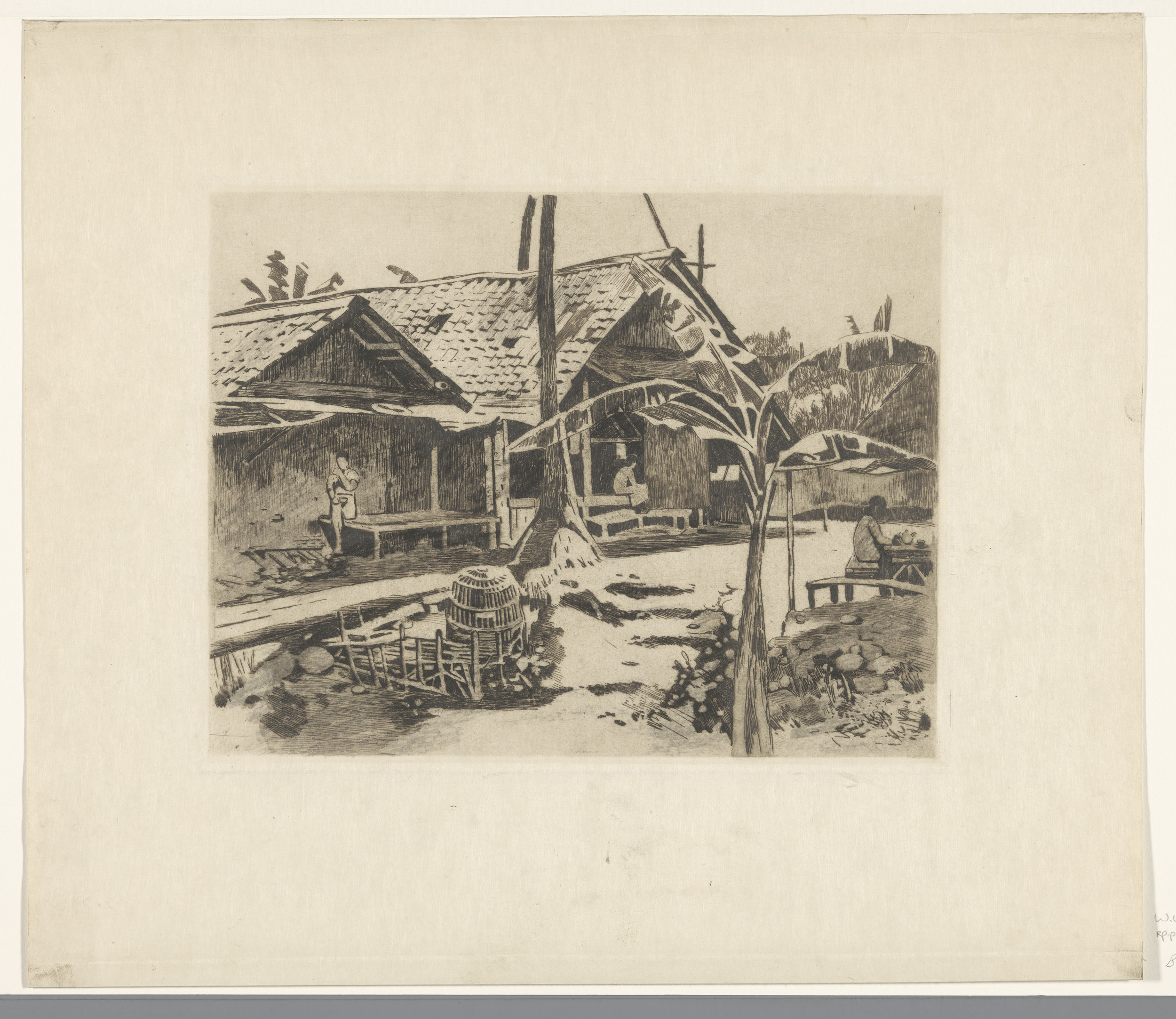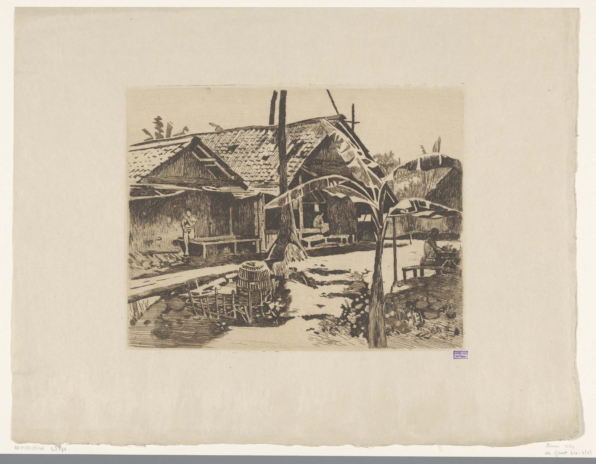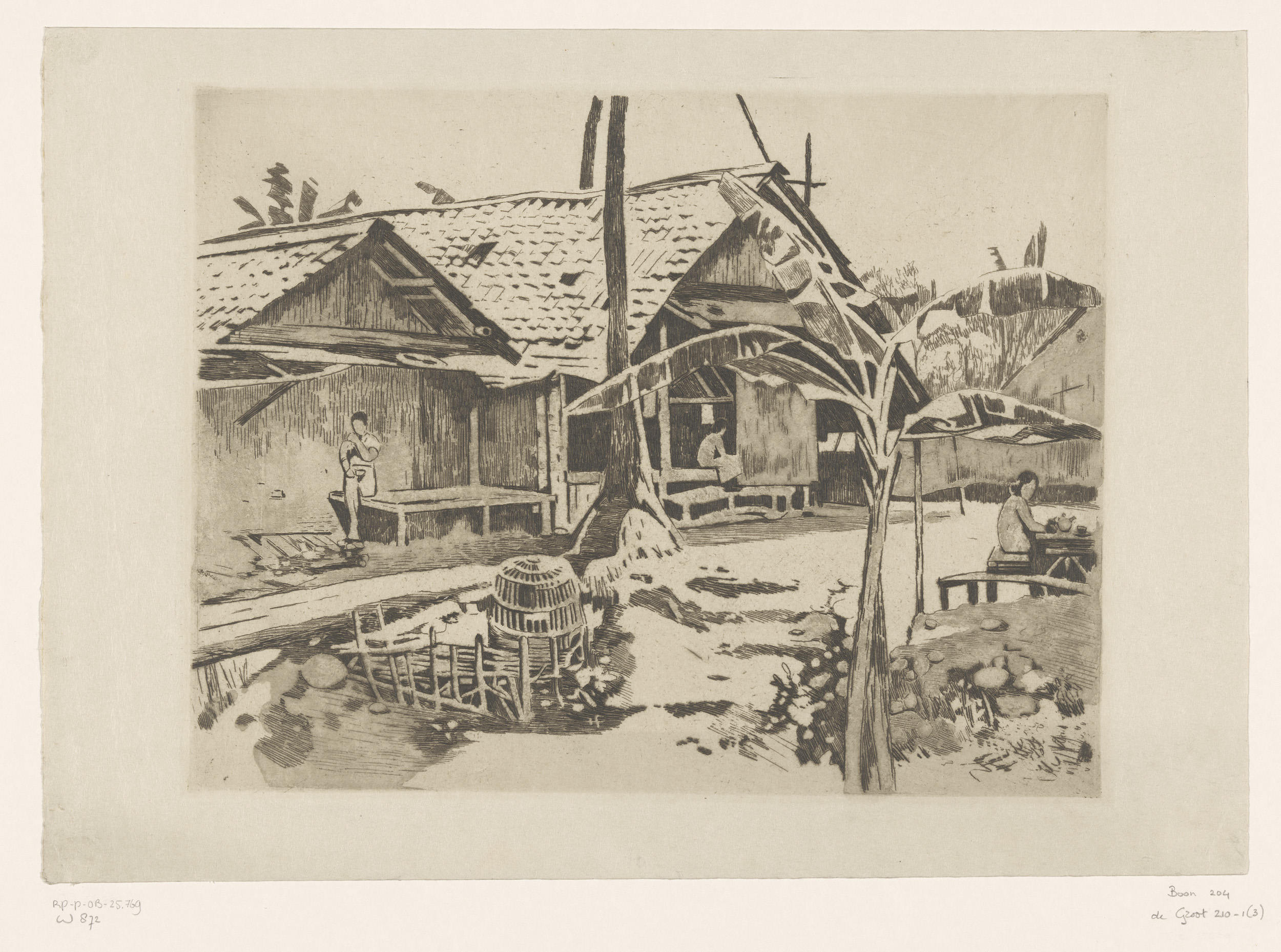 Gezicht op een landschap met klapperbomen in Buitenzorg