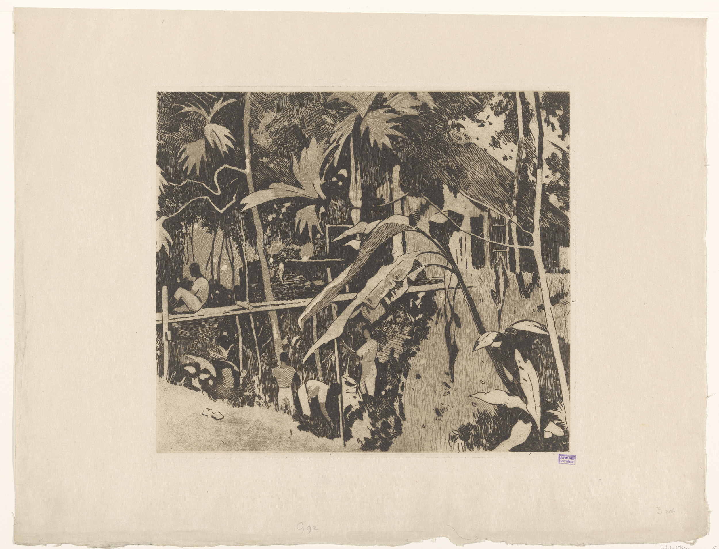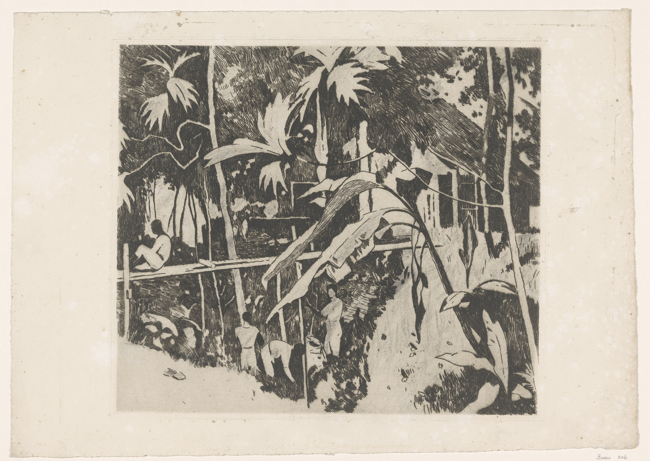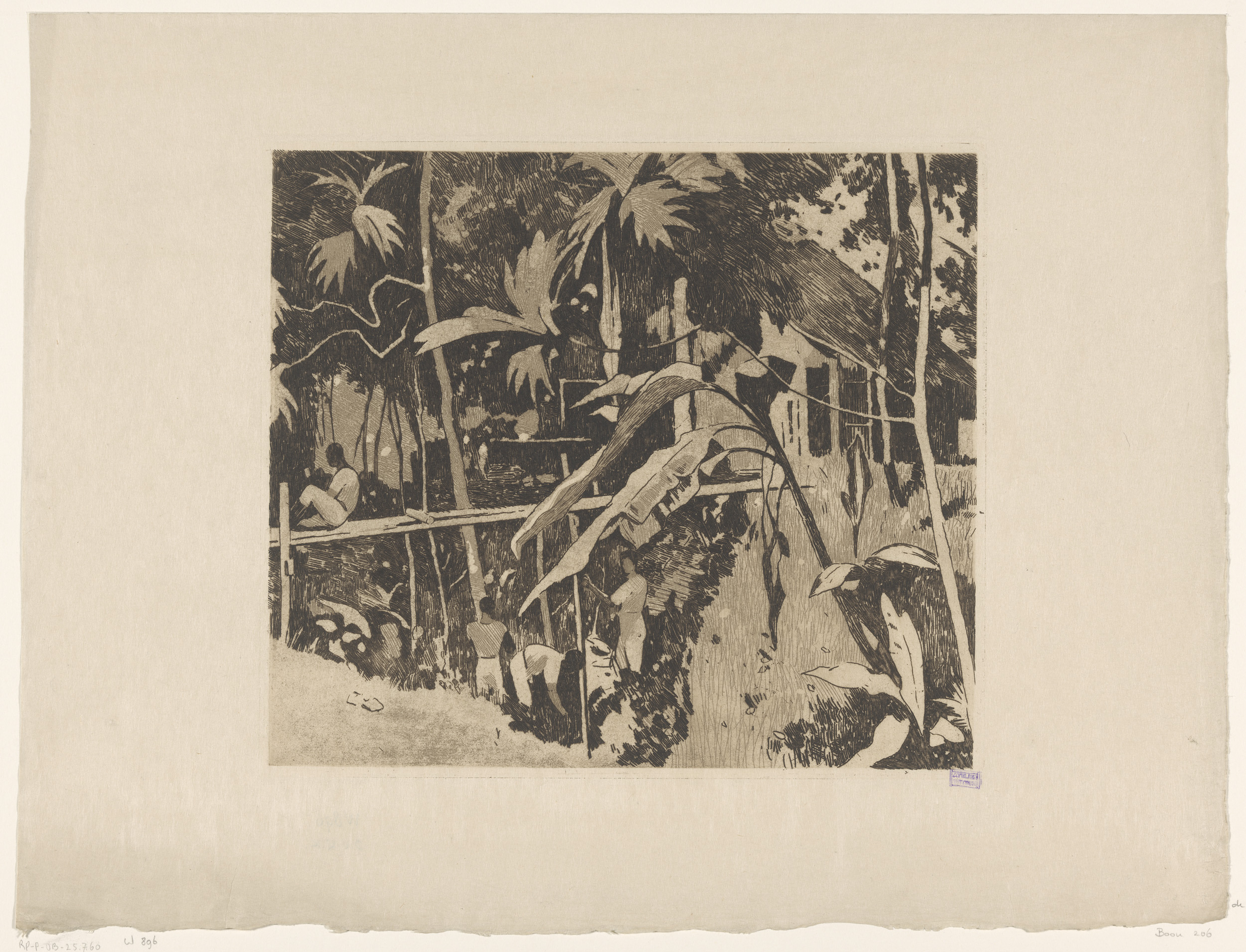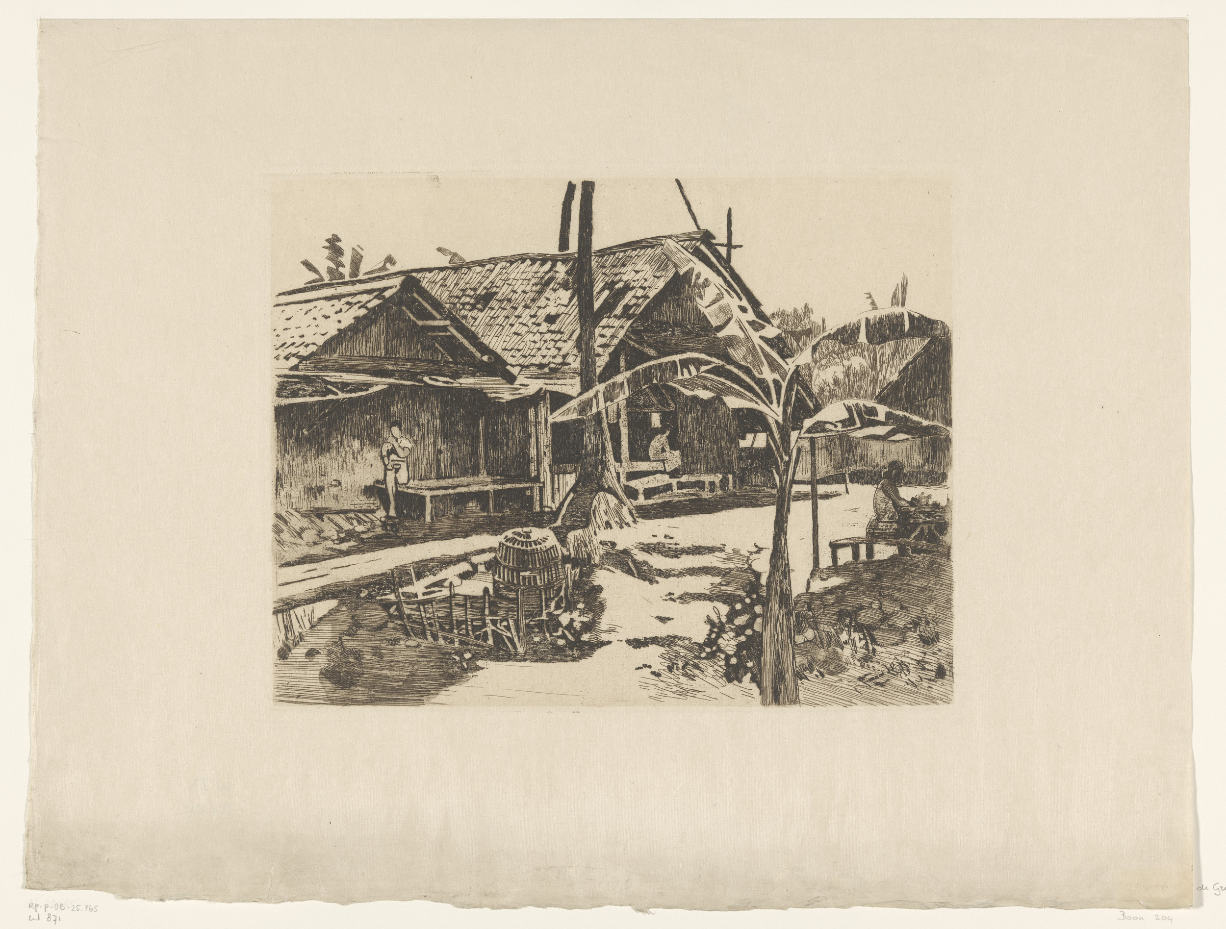 Gezicht op een landschap met klapperbomen in Buitenzorg
