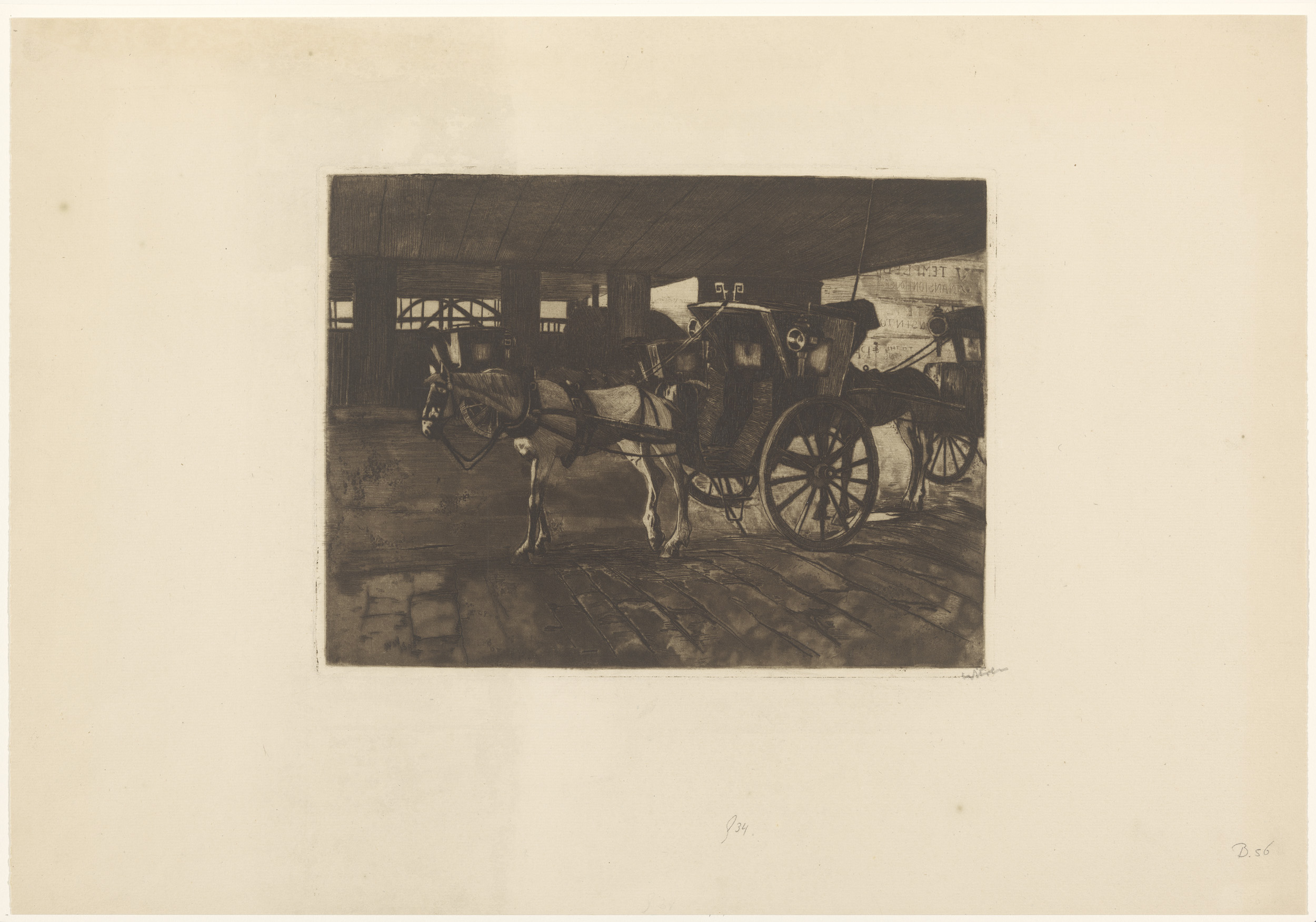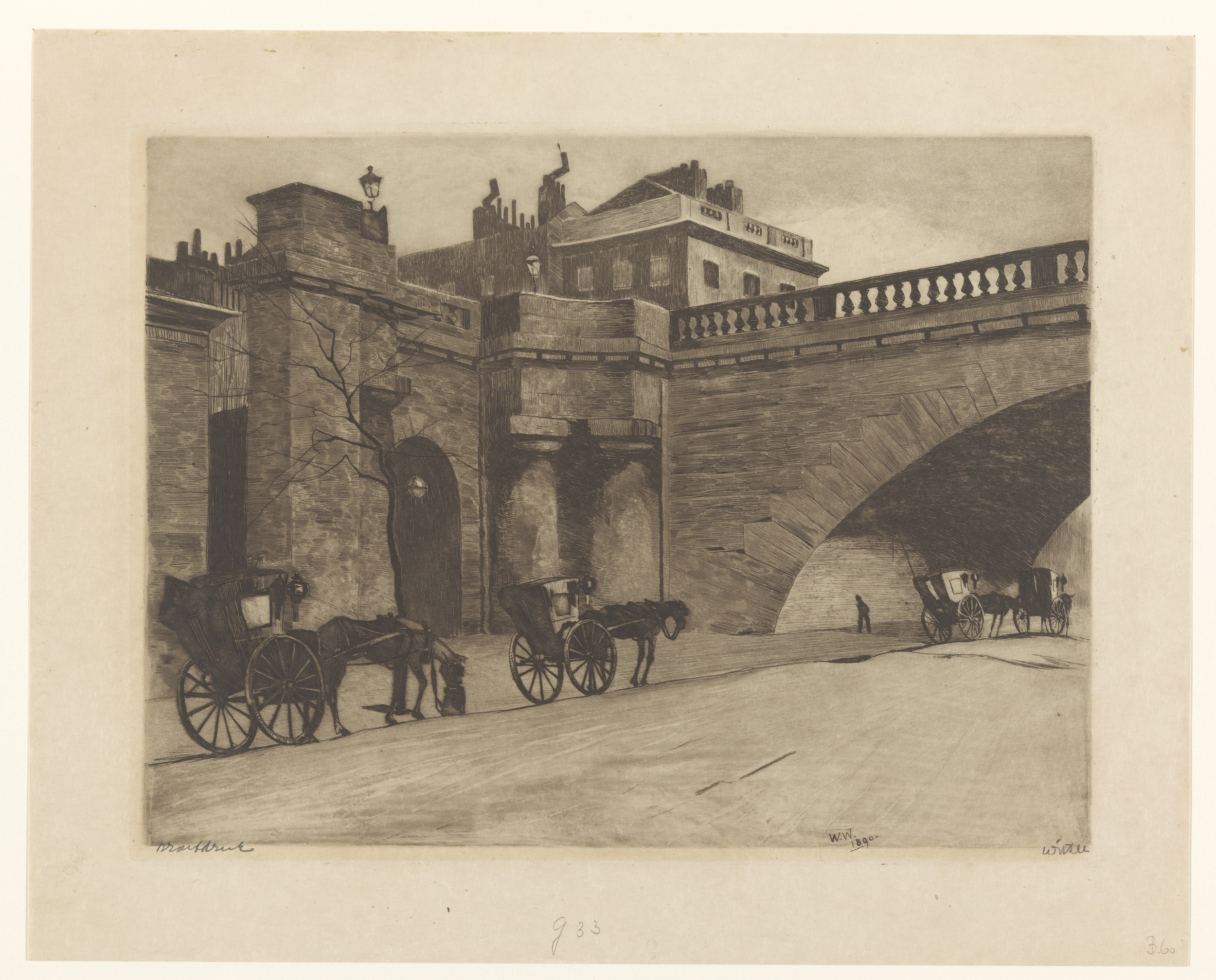 Wachtende rijtuigen onder de Charing Cross Bridge in...