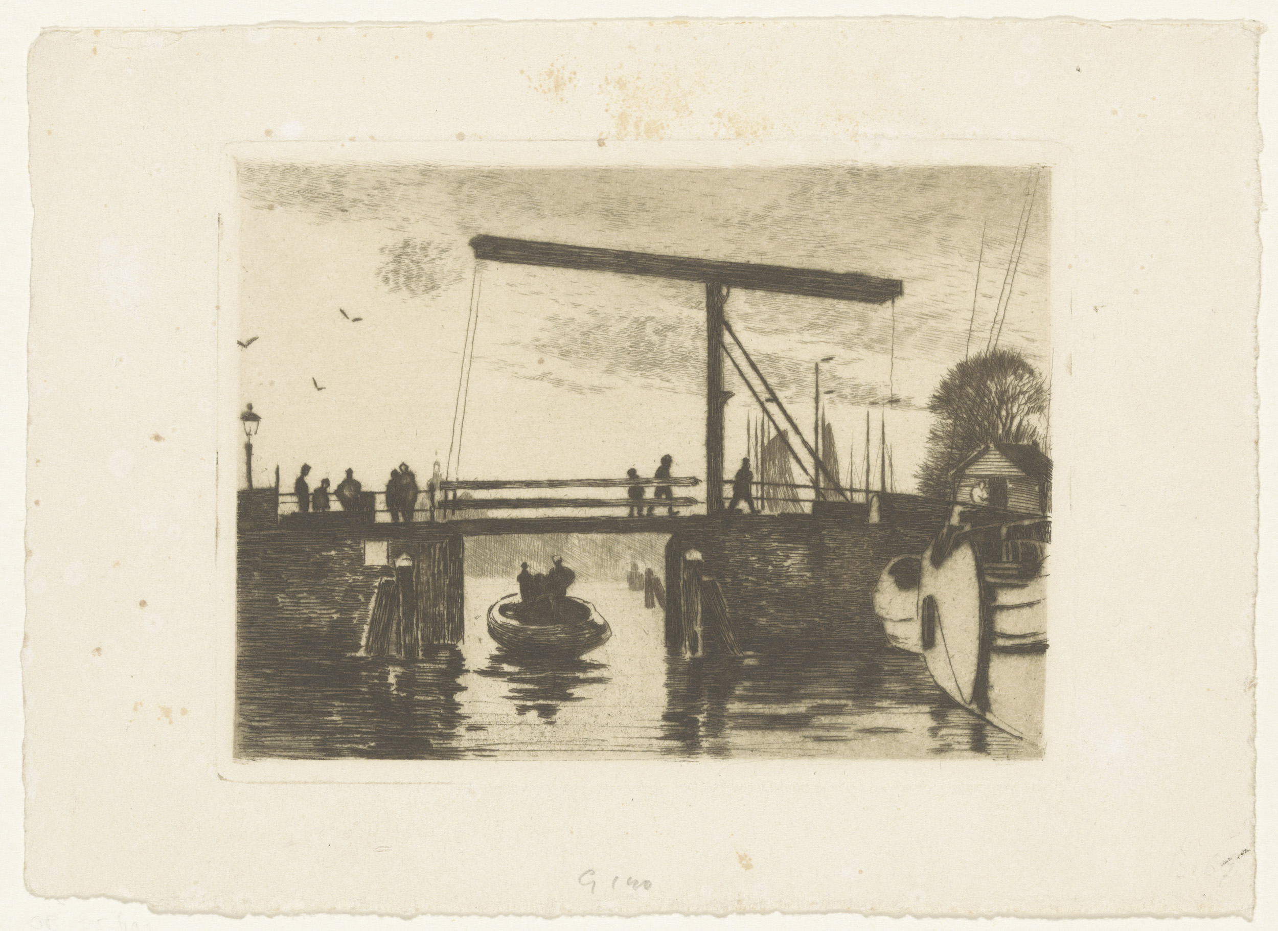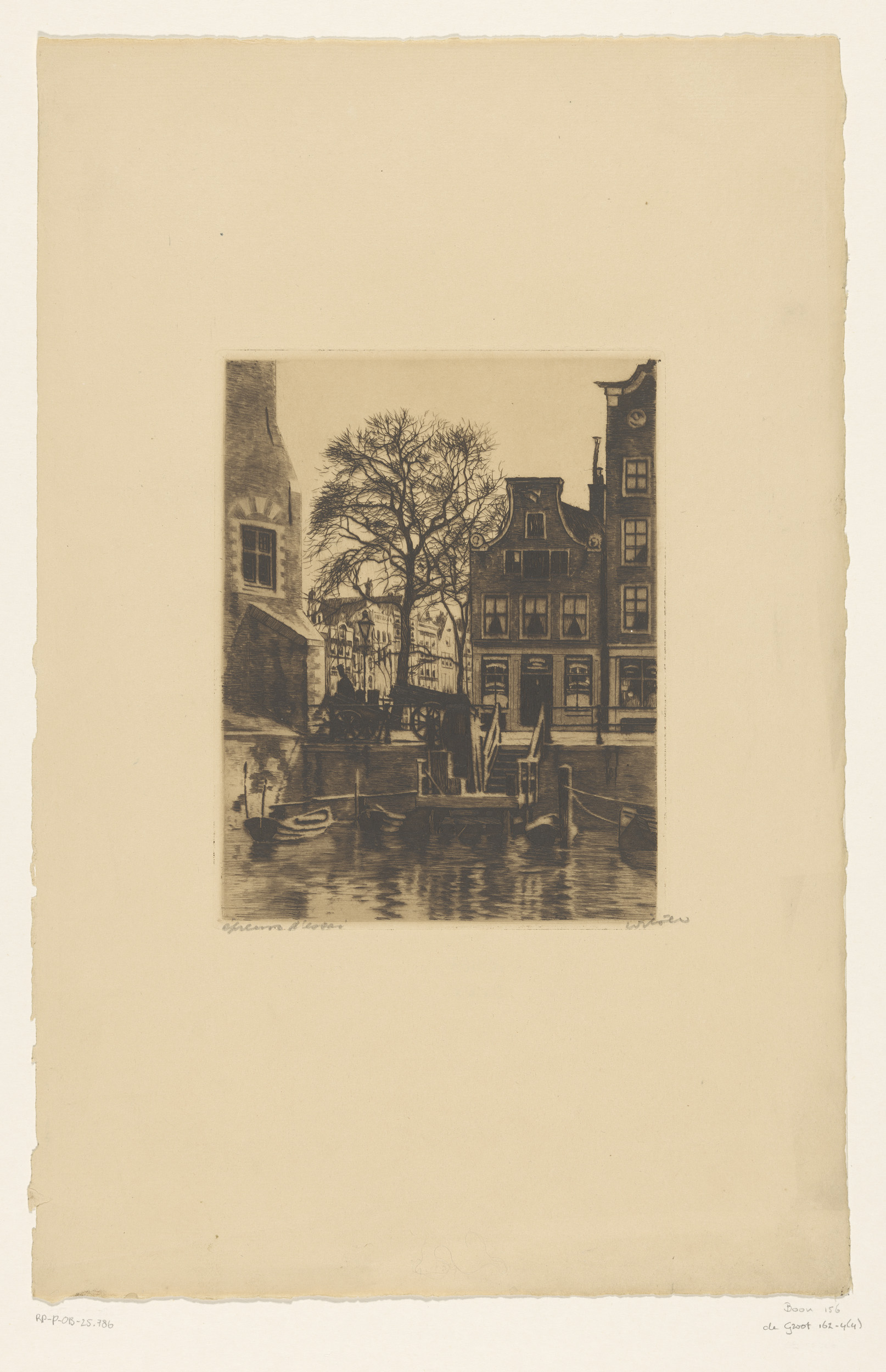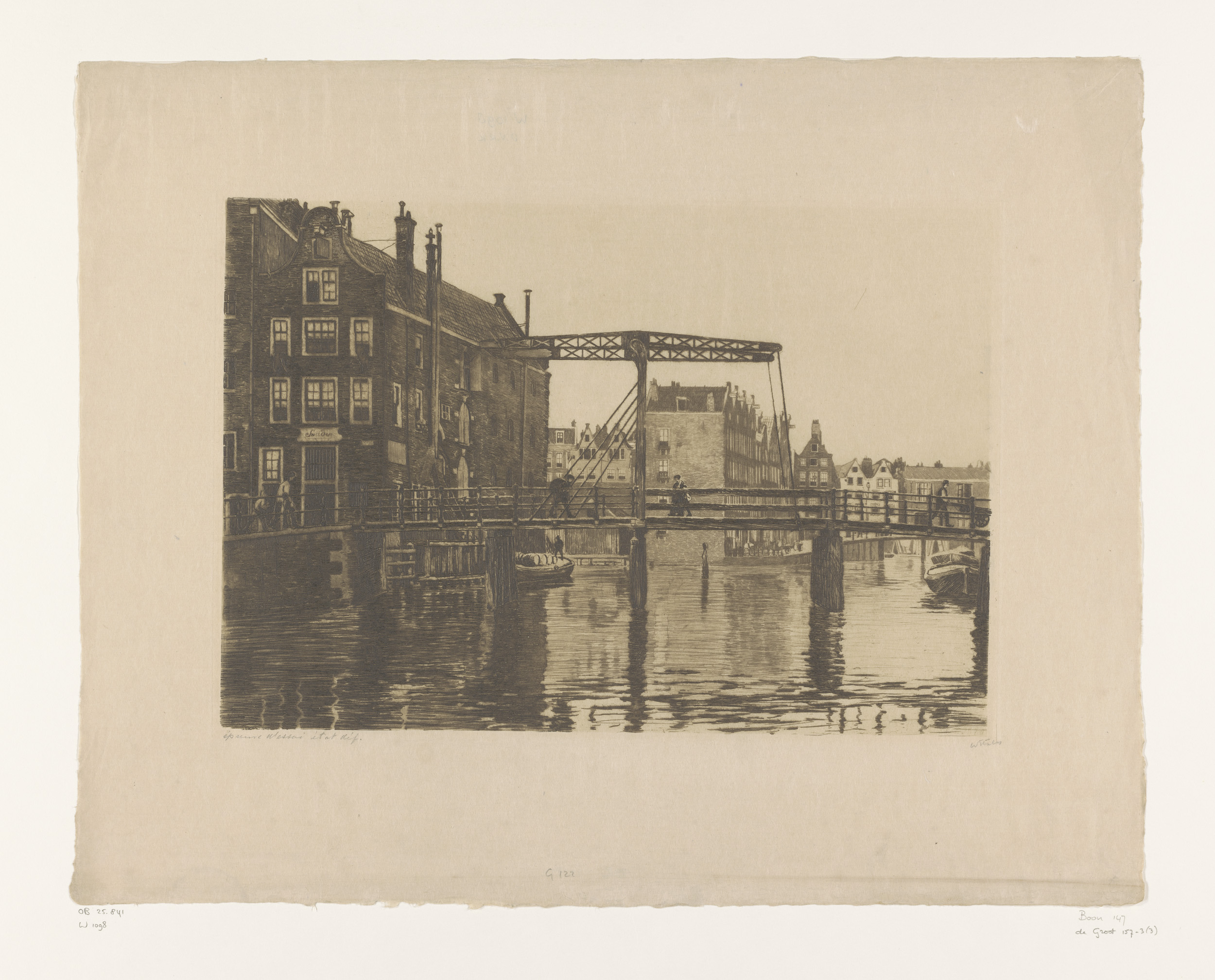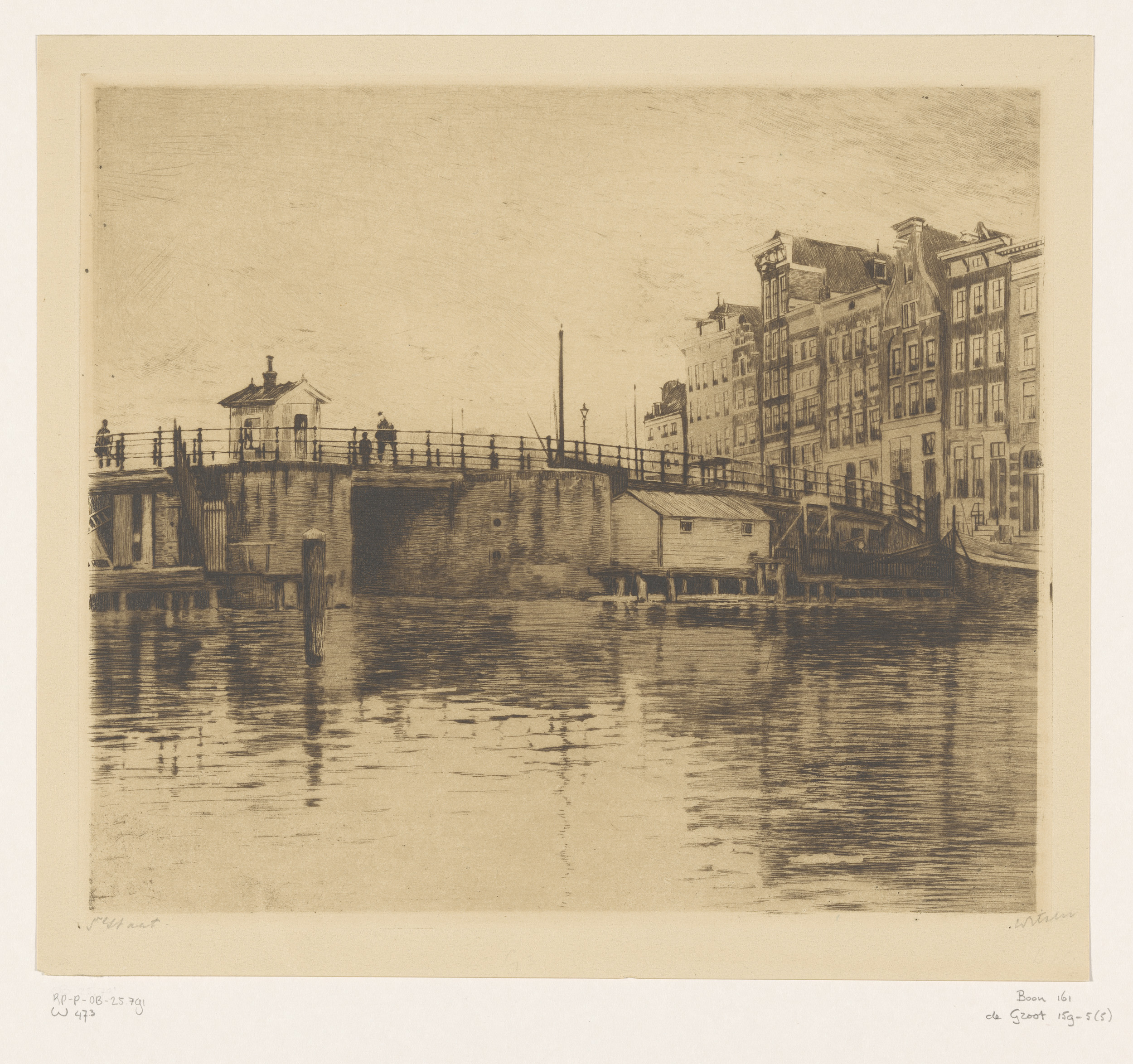 Gezicht op de ophaalbrug tussen Rapenburg en Uilenburg