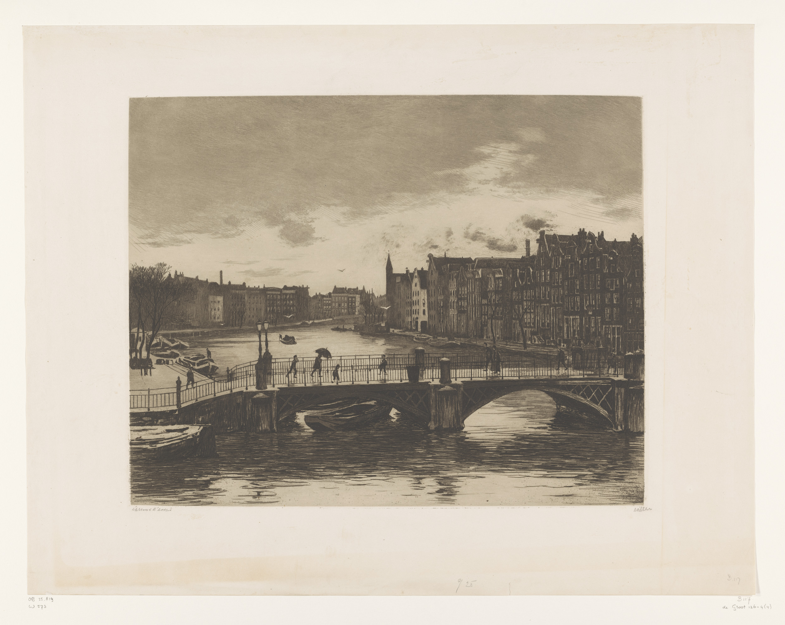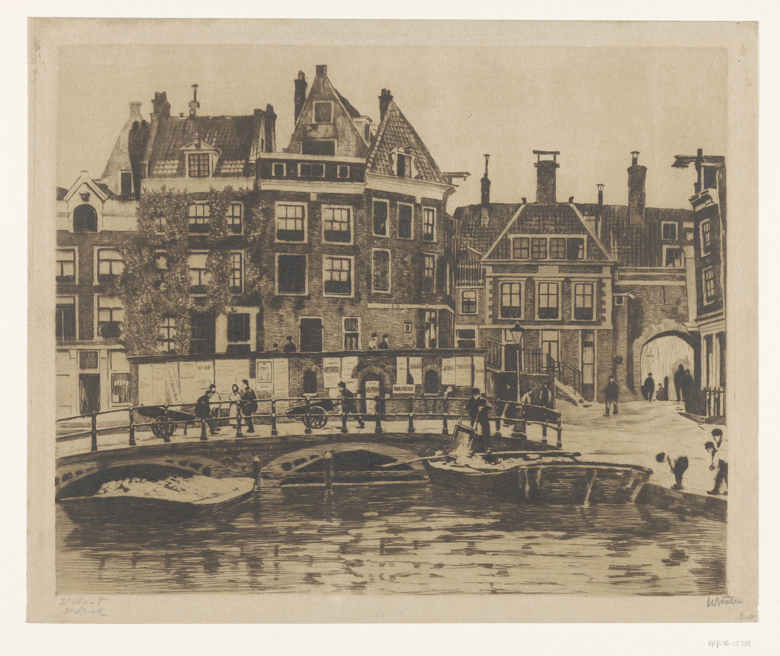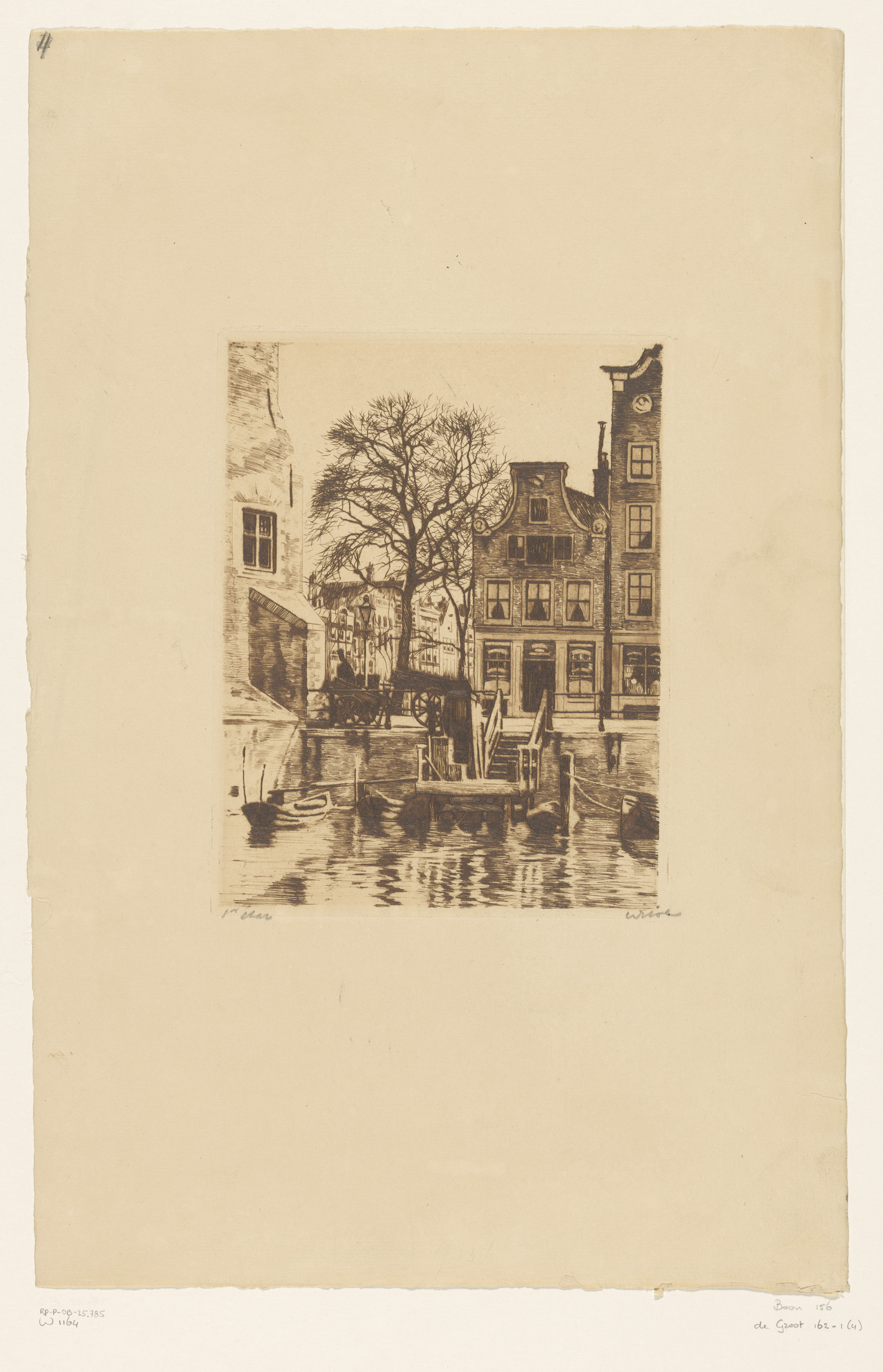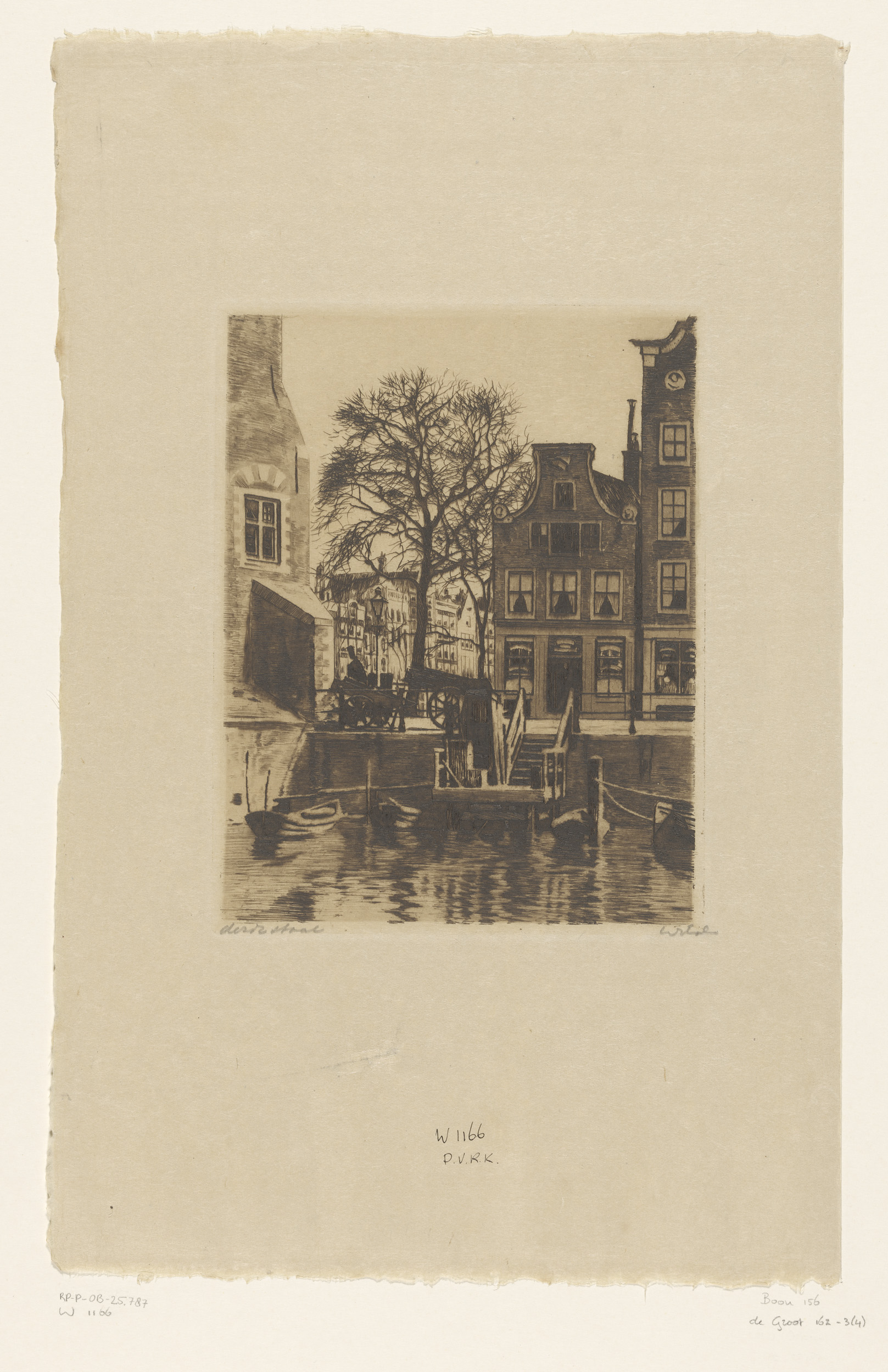 Gezicht op de ophaalbrug tussen Rapenburg en Uilenburg