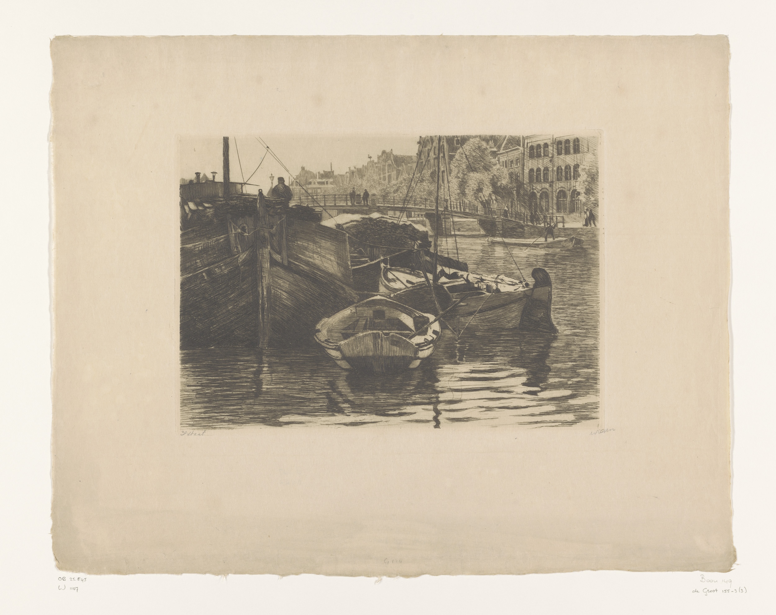 Gezicht vanaf de Rapenburgwal op het pakhuis Sweeden...