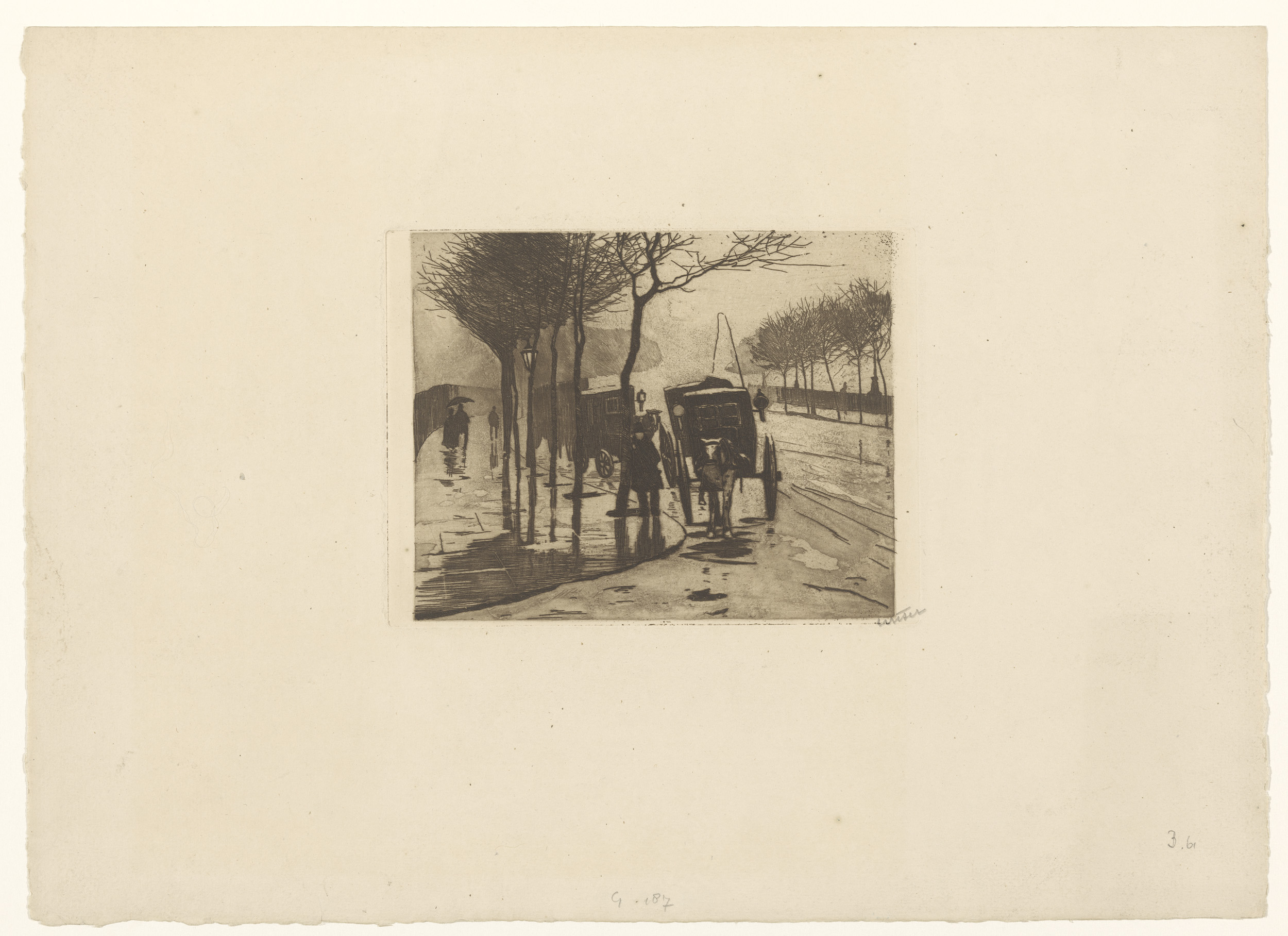 Wachtende rijtuigen op de Victoria Embankment in Londen