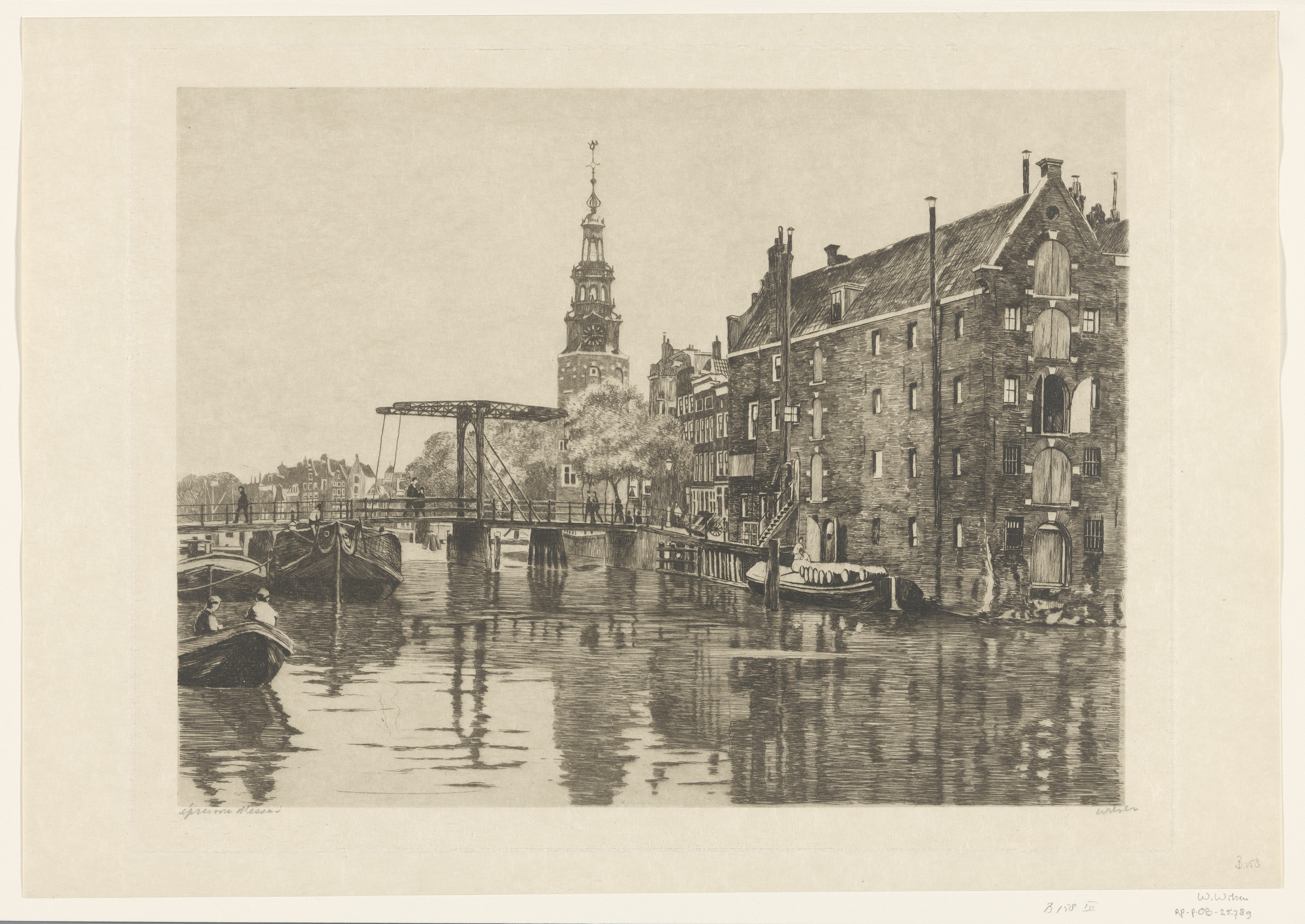 Gezicht op de Montelbaanstoren en de Oude Schans in ...