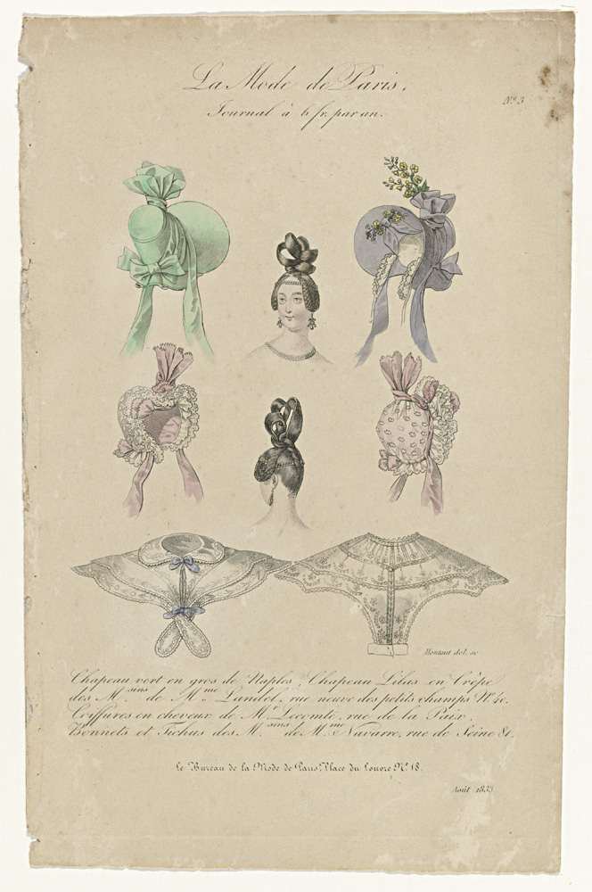 La Mode de Paris, août 1833, No. 3: Chapeau vert en ...