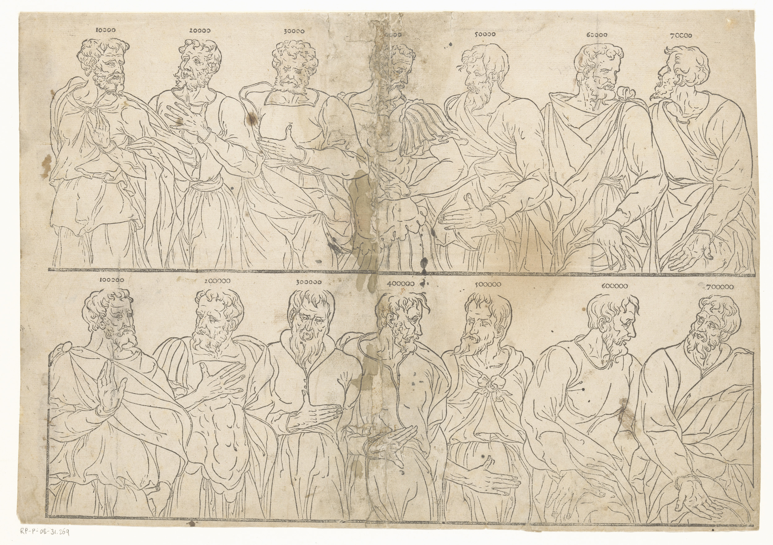 Veertien mannen in twee rijen