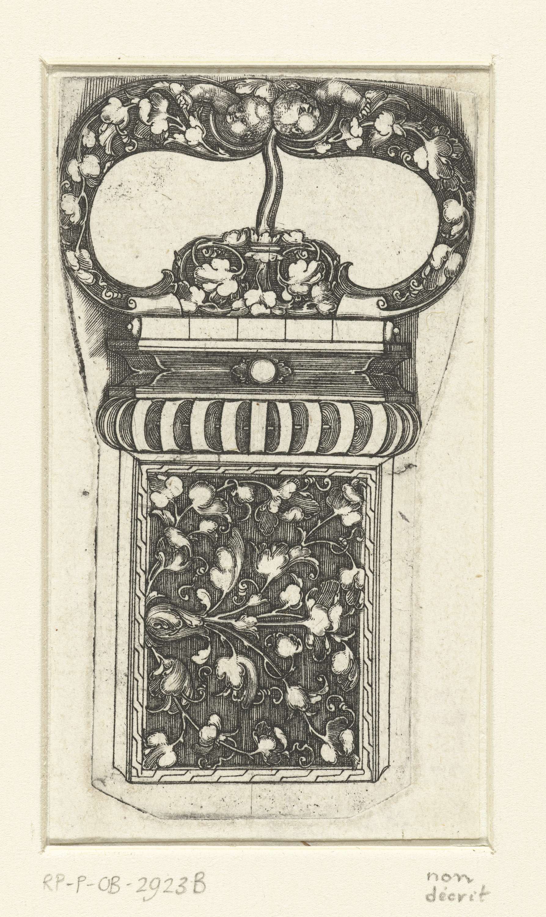 Kandelaber met bladranken en een cherubijn