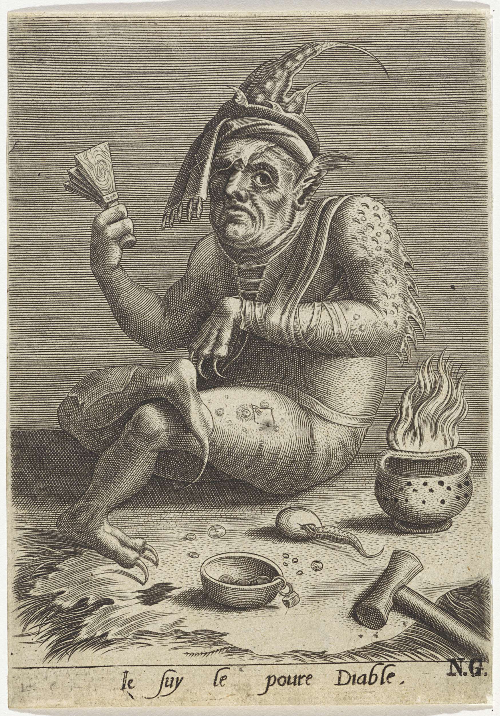 Leprozenbedelaar in de gedaante van de Duivel
