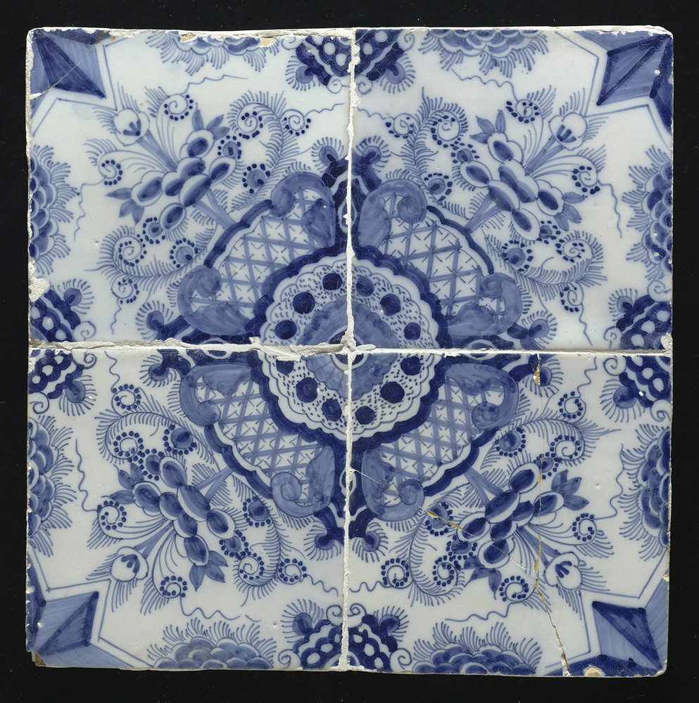Tegelveld bestaande uit vier tegels van keramiek met...