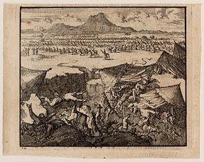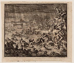 Dathan en Abiram met hun volgelingen door de aarde v...