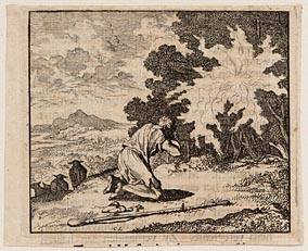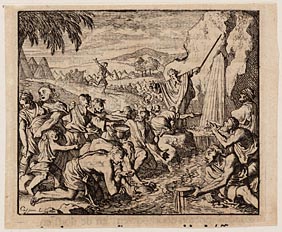 Mozes naast de stenen tafelen spreekt tot de oudsten