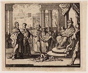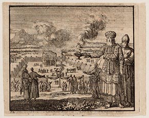 Korach en zijn 250 volgelingen voor het altaar door ...