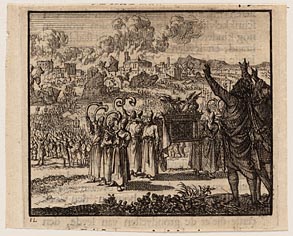 De Israëlieten trekken door de droge Jordaan waarin ...