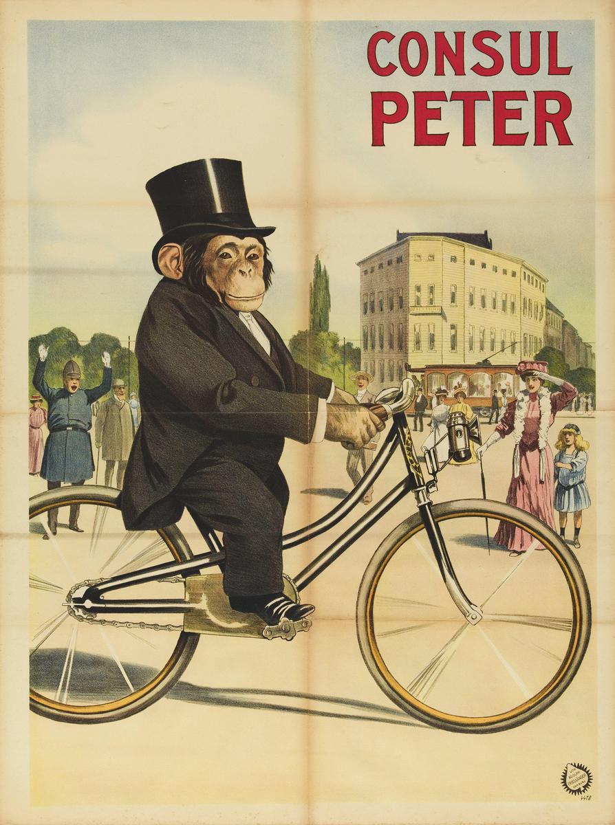 Consul Peter- fietsende chimpansee