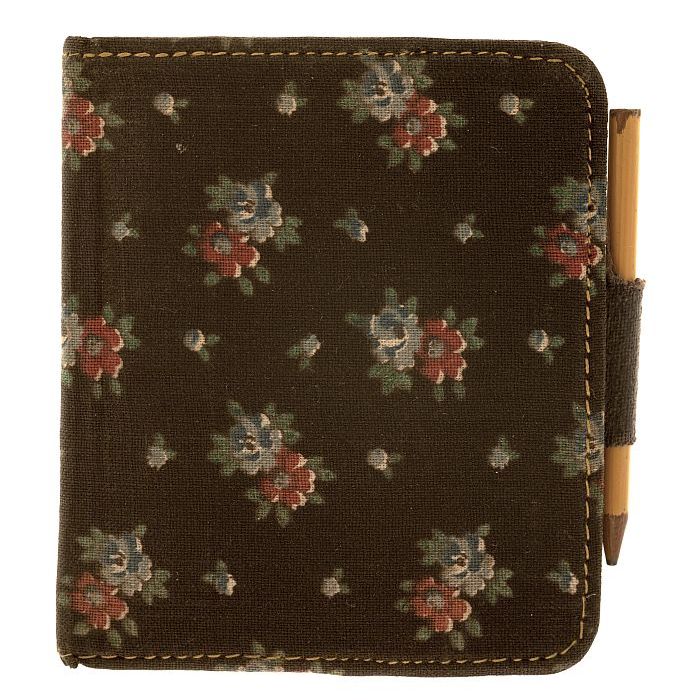 Zwart notitieboekje met bloemmetjespatroon, met potl...