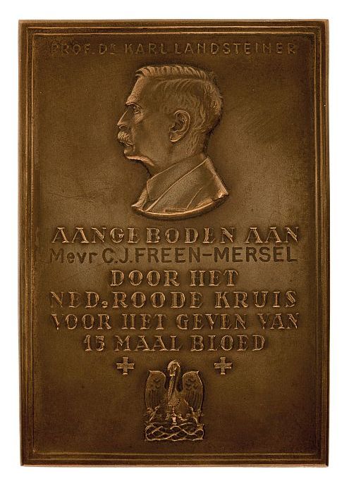 Landsteiner-plaquette ten name van mevrouw C.J. Free...