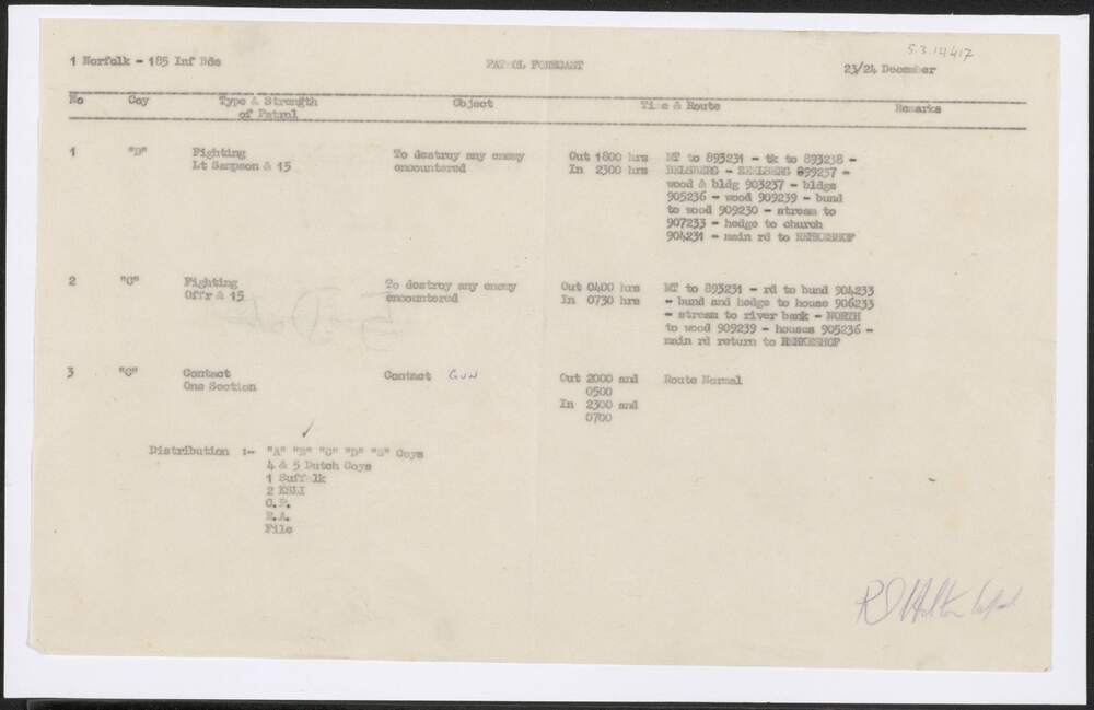 Patrol forecast 1 Norfolk, 23/24 december 1944