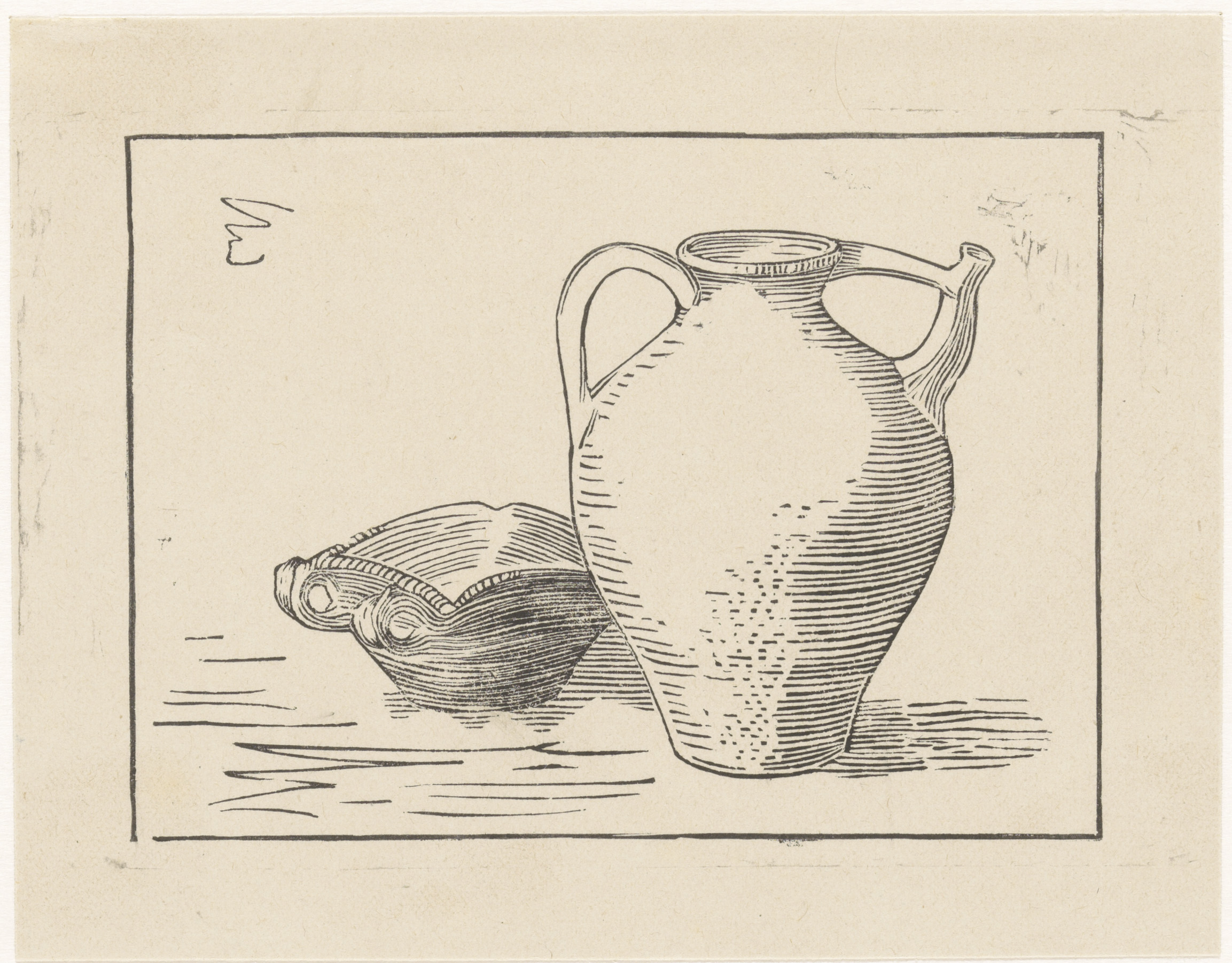 Stilleven met kruik en knoflook