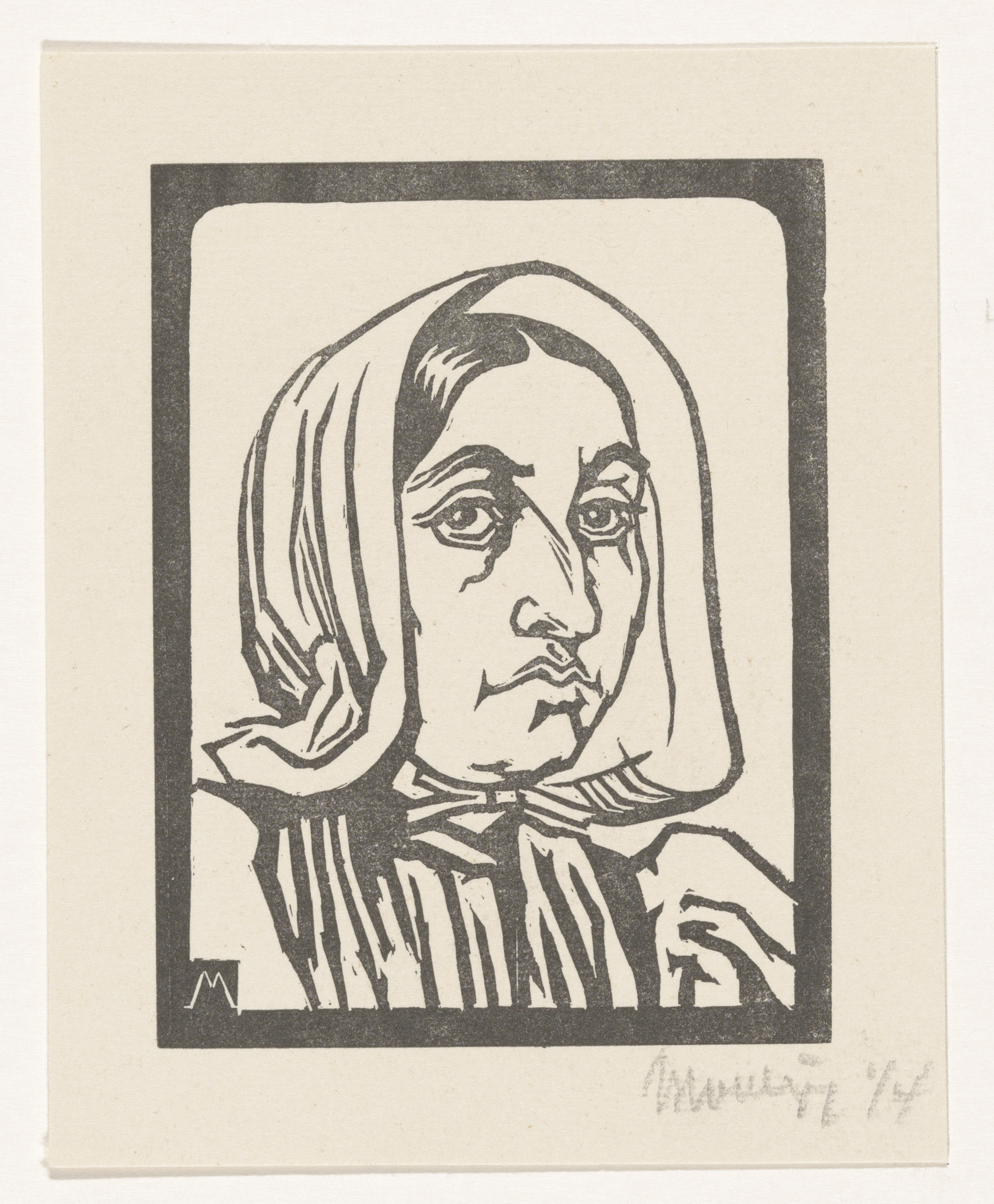 Hoofd van een vrouw met kap