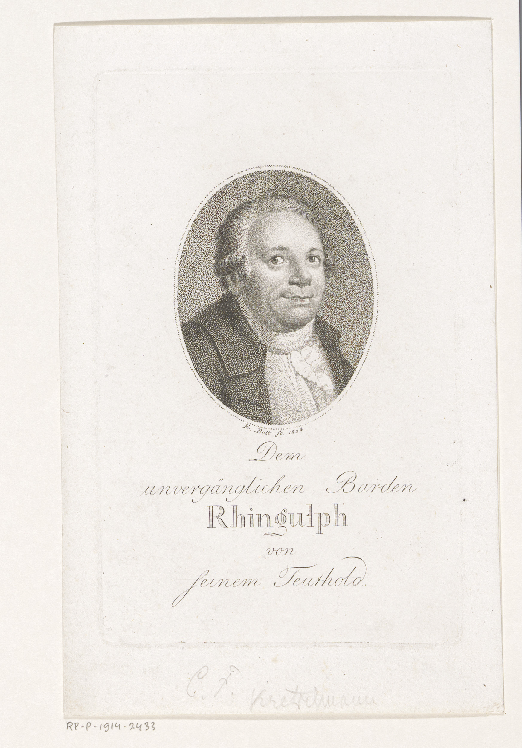 vermeld op object Bolt, Johann Friedrich