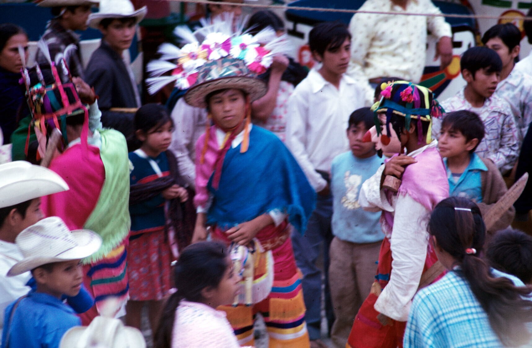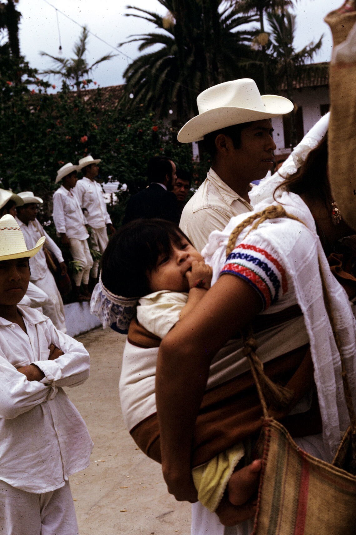 toekijkende mensen; NB: vrouw met "maxtahual"