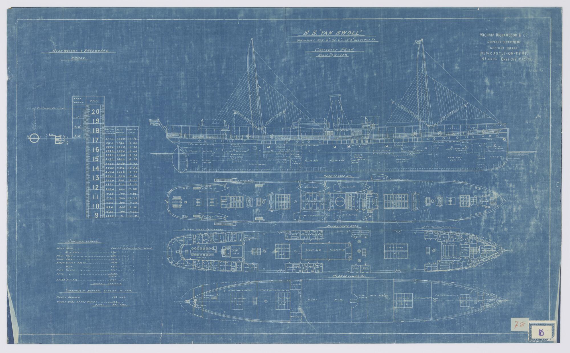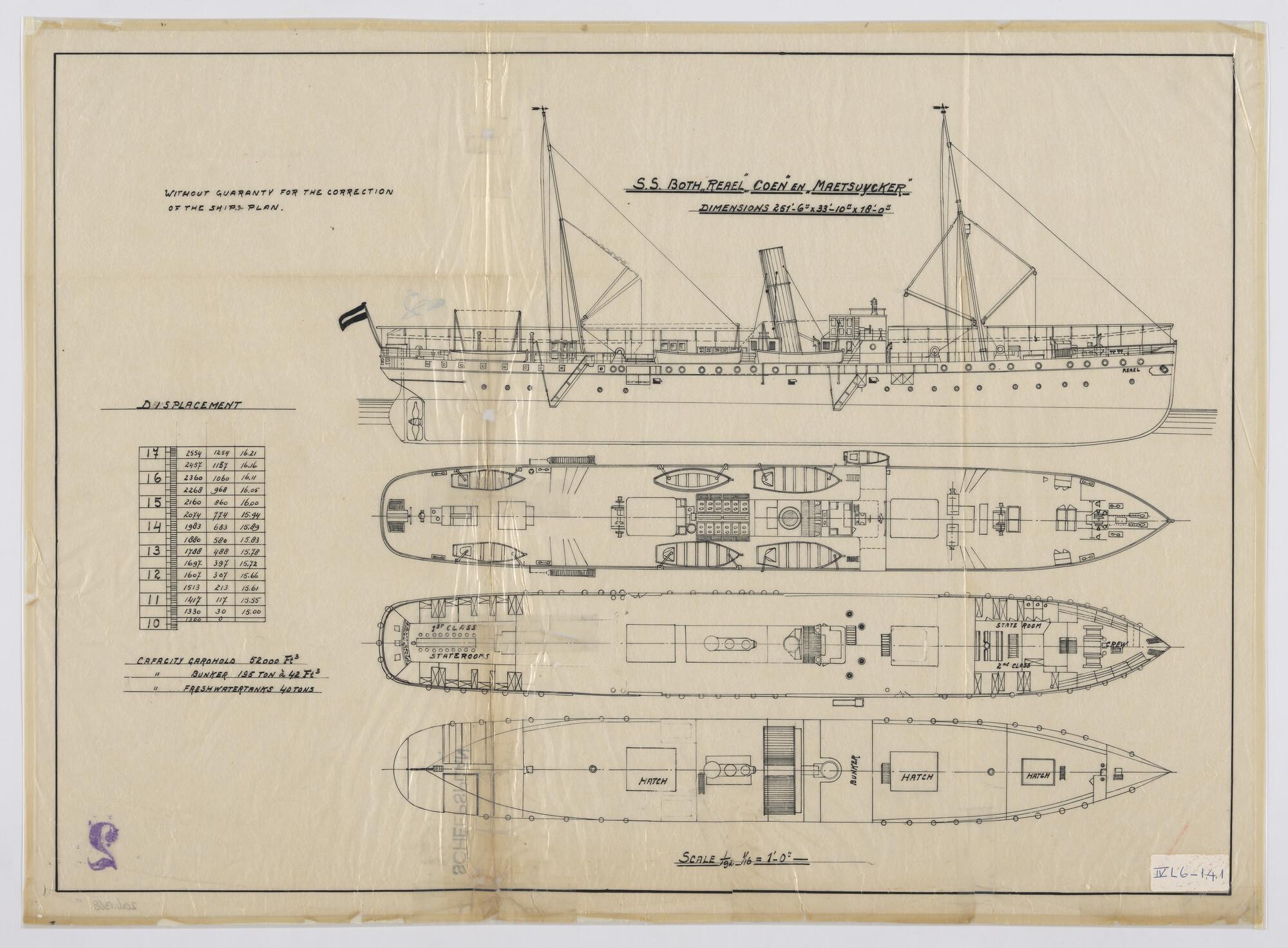 Algemeen plan van het vracht- en passagiersschip ss....