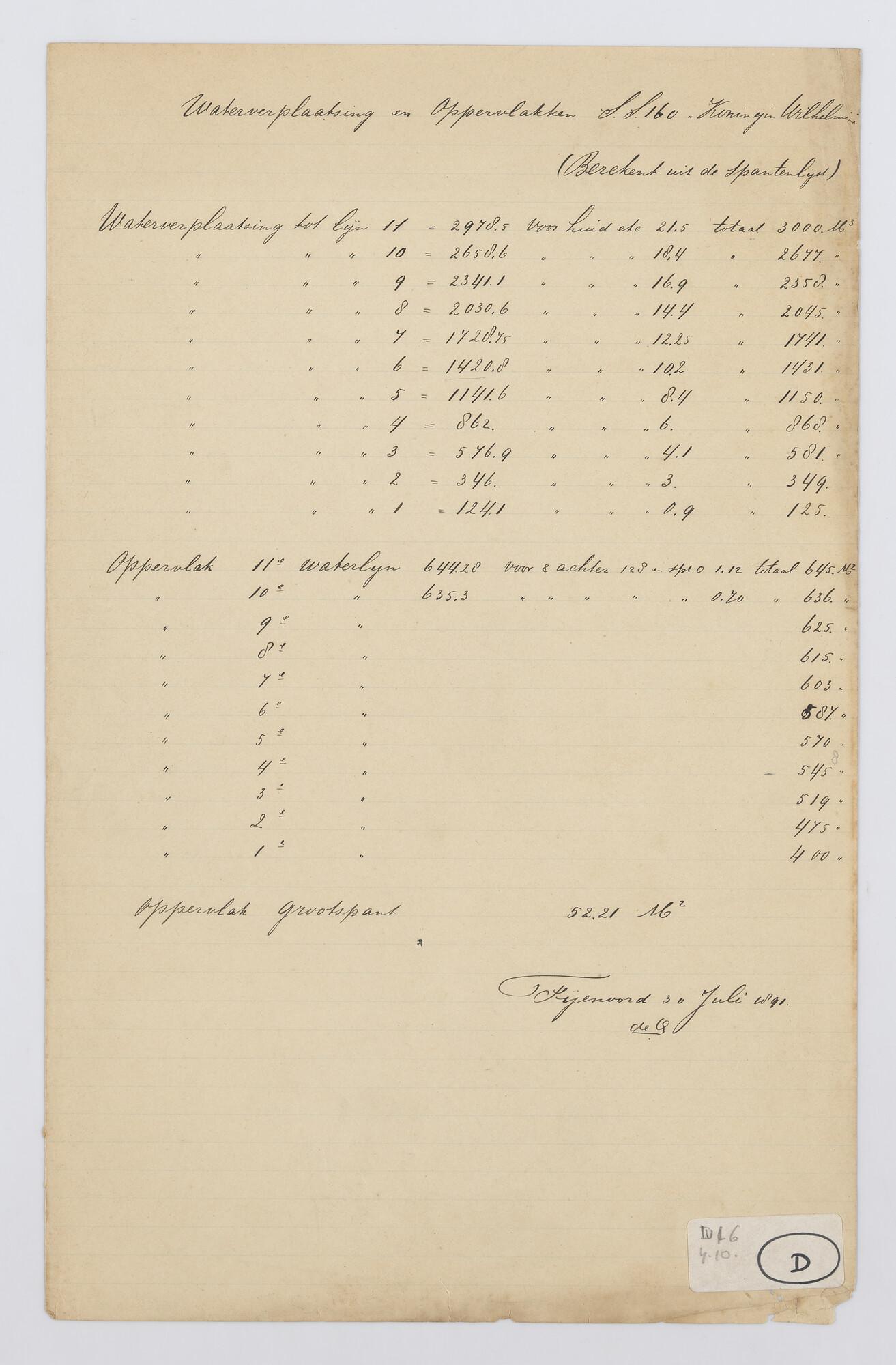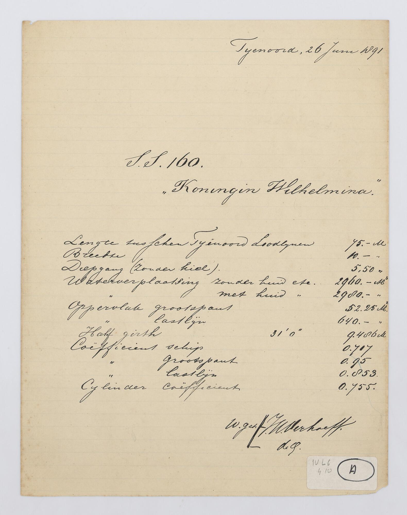 Spantenlijst van het passagiersschip Koningin Wilhel...