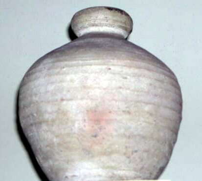 Kruik van witbakkend aardewerk voor transport van ol...