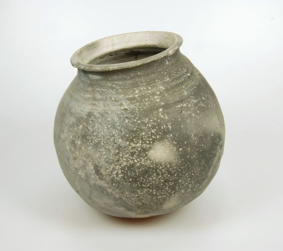 Grijze voorraadpot met geheel rond bol lichaam