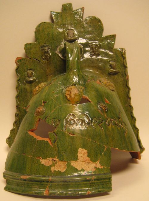 Vuurklok van groen geglazuurd aardewerk met diverse ...