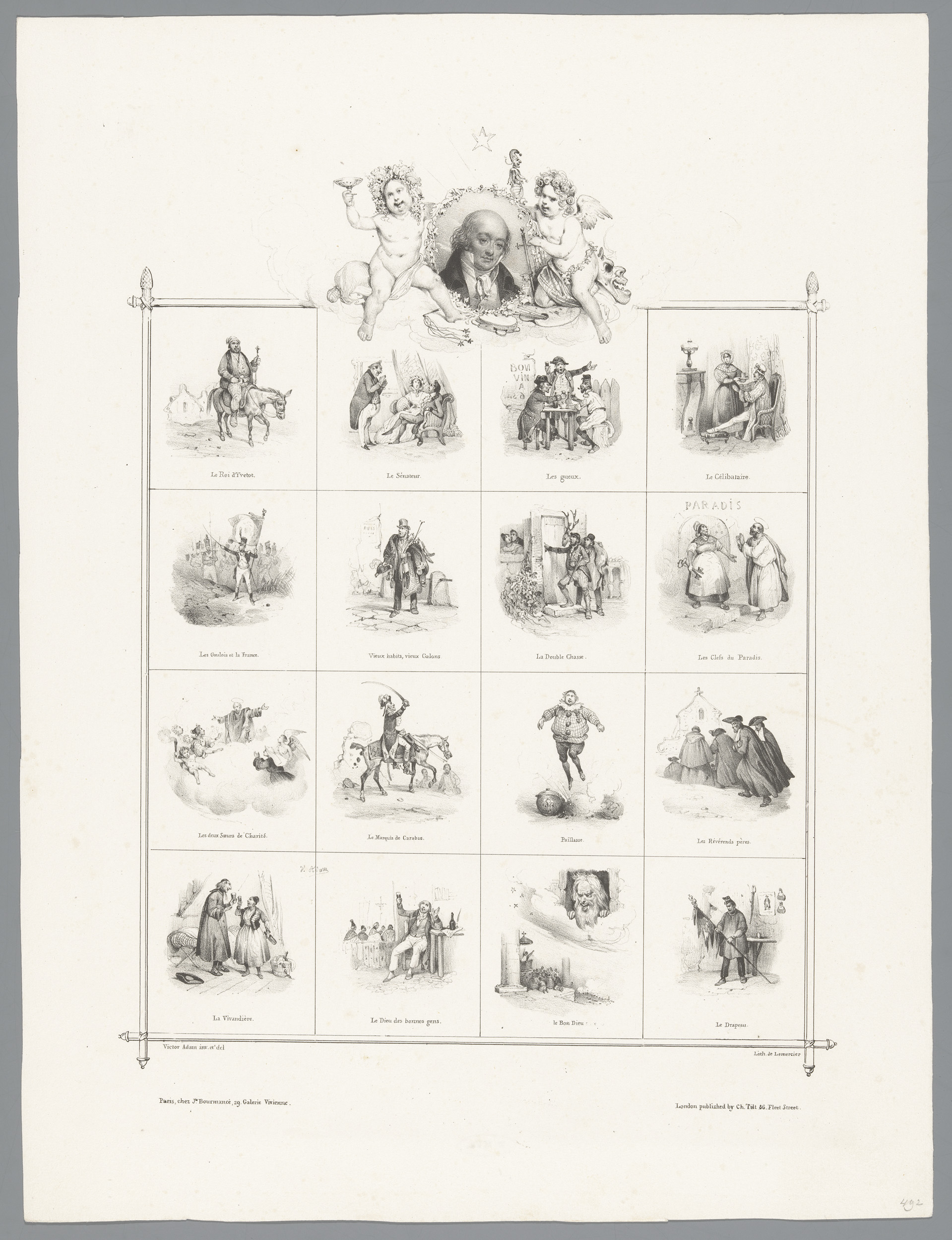Portret van Pierre-Jean de Béranger en zestien voors...