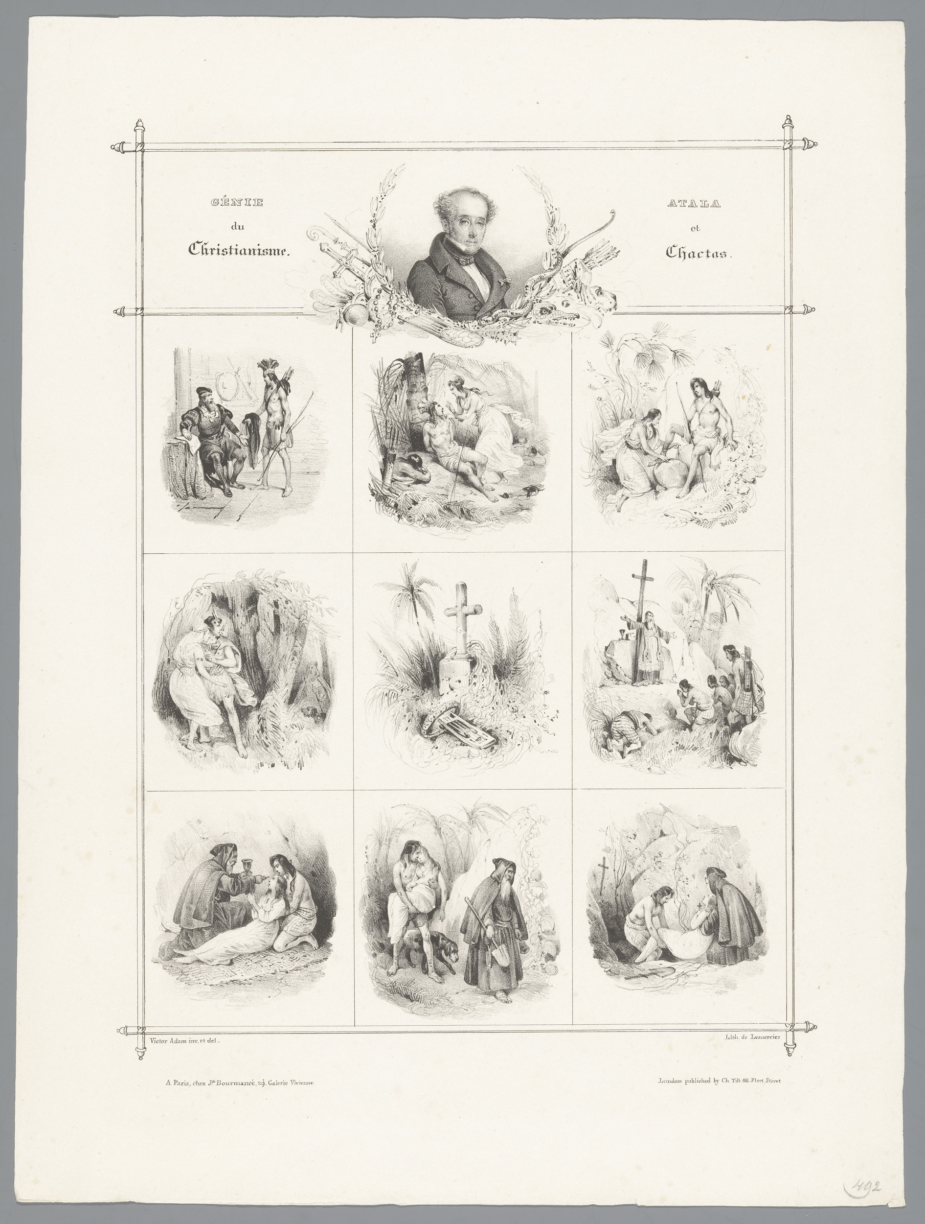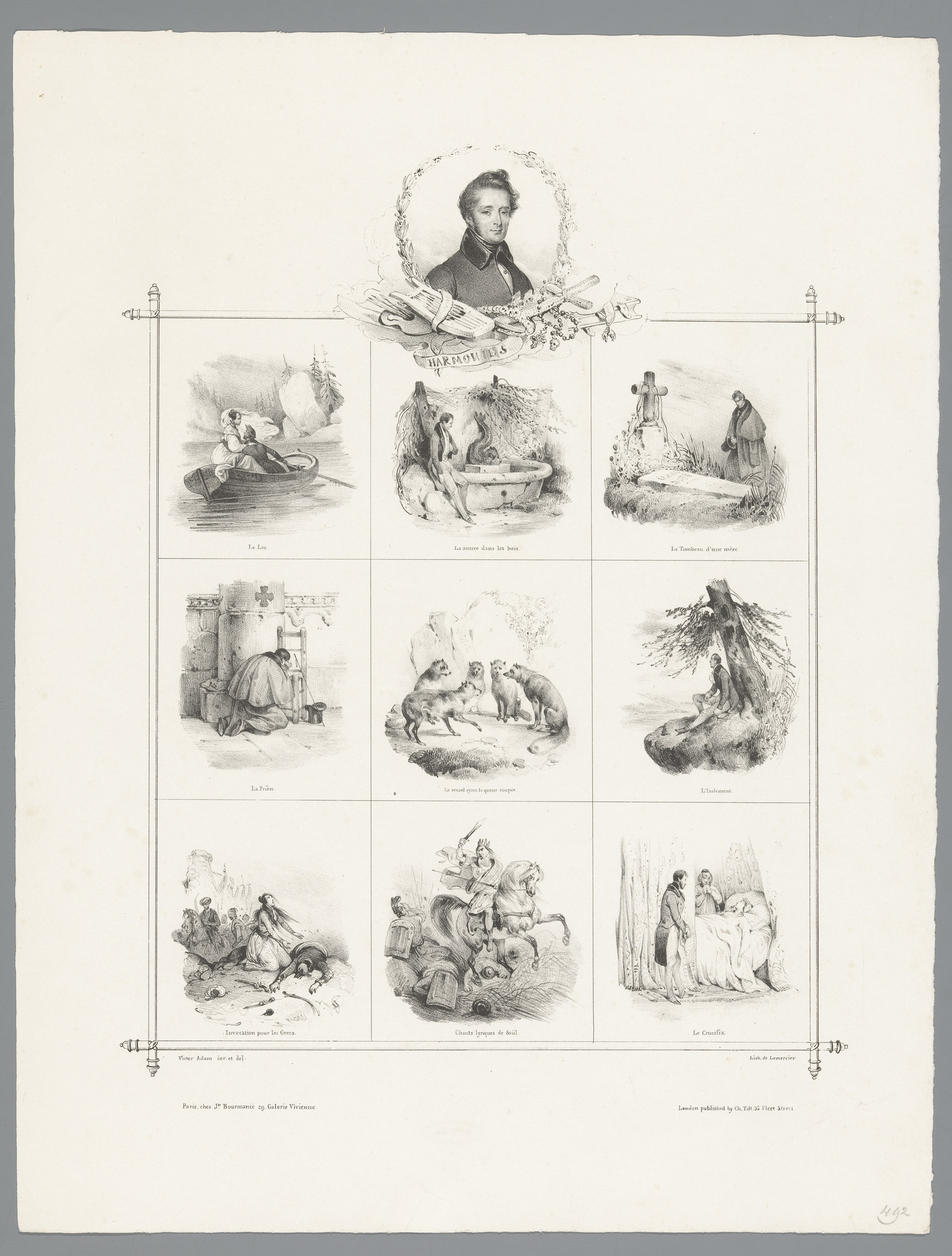Portret van Alphonse de Lamartine en negen voorstell...