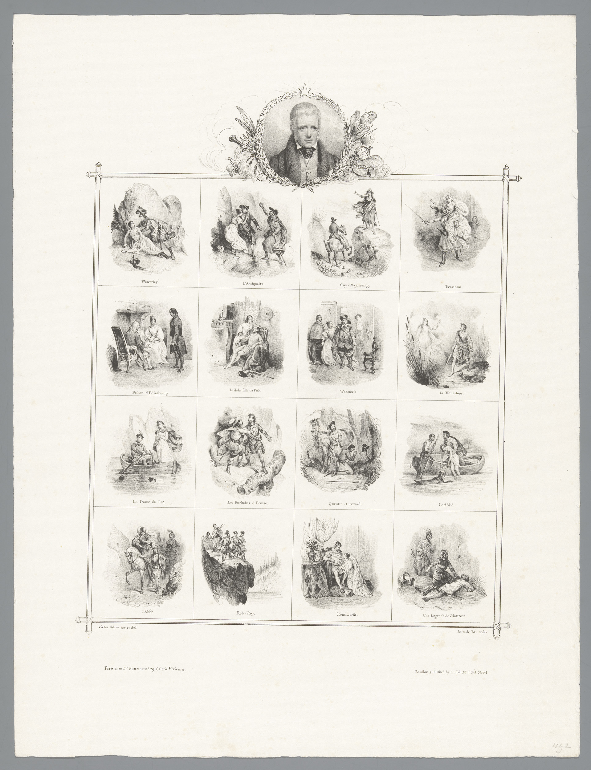 Portret van Walter Scott en zestien voorstellingen u...